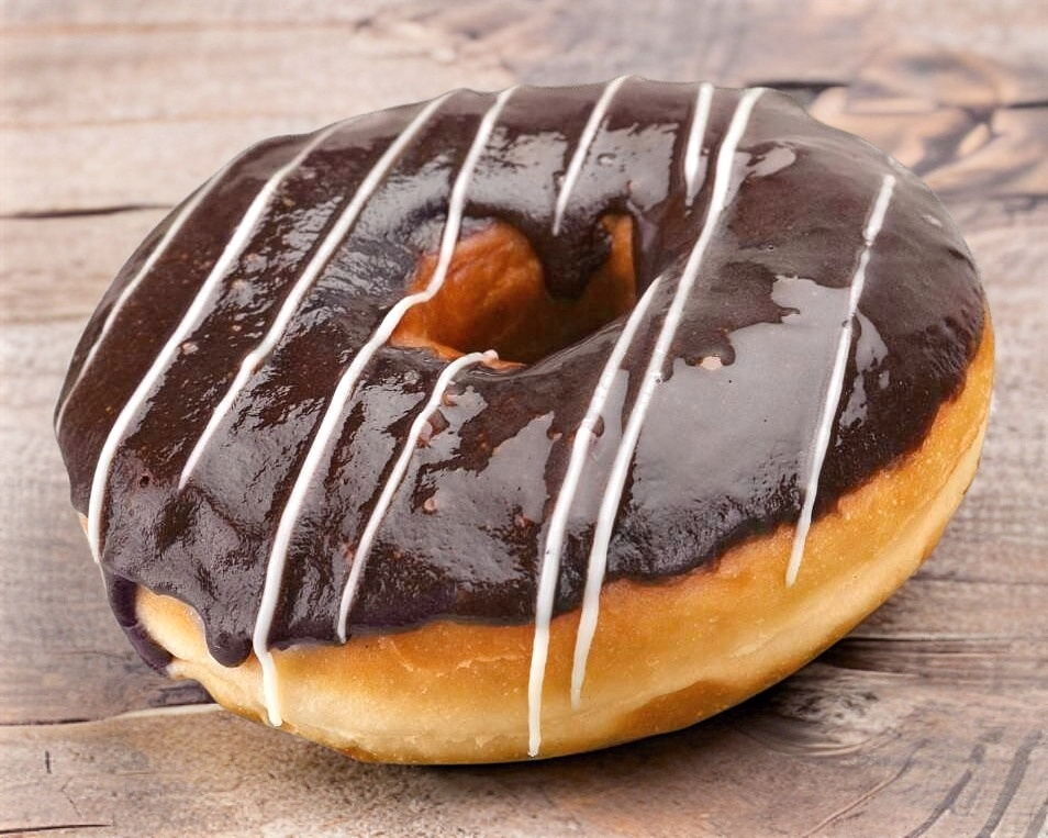Dona, cubierta de chocolate ( obscuro,blanco,rosa) con grageas de colores, coco, cacahuate u otro de nuestros toppings