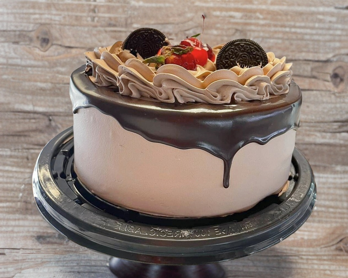 Pan de chocolate,Relleno de dulce de leche,Jarabe de 3 leches,chantilly. Cubierto de chantilly, ganashe y galletas oreos