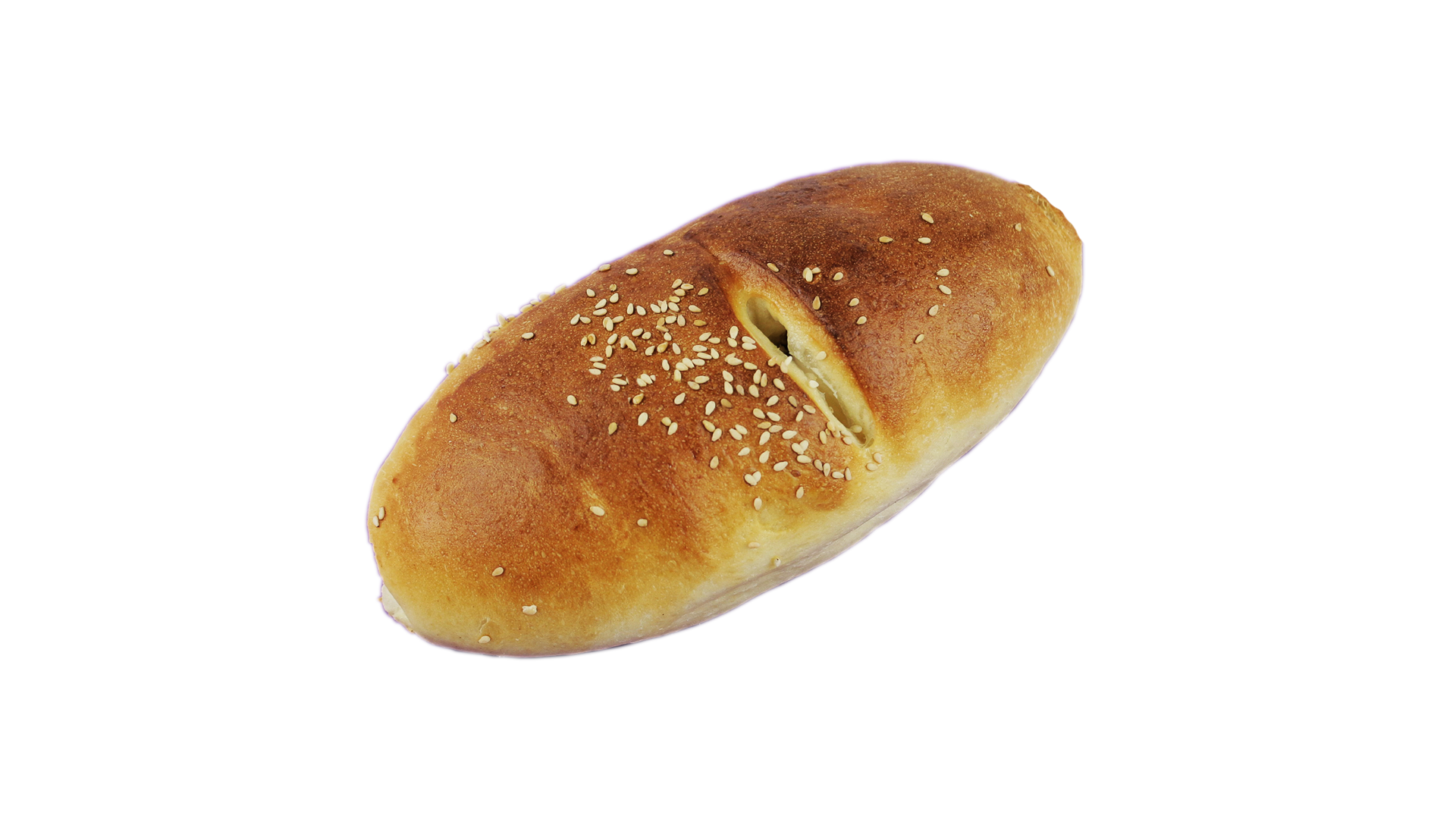 Pan blanco relleno de queso crema y jalapeños, cubierto de ajonjolí.
