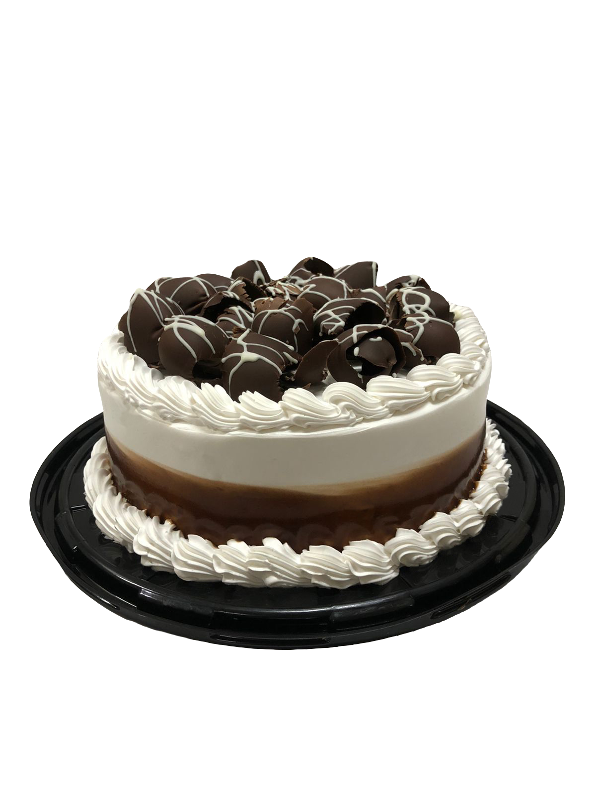 Suave pan de vainilla, bañado en jarabe de 3 leches con tradicional rompope mexicano, relleno de dulce crema nata con notas de chocolate.