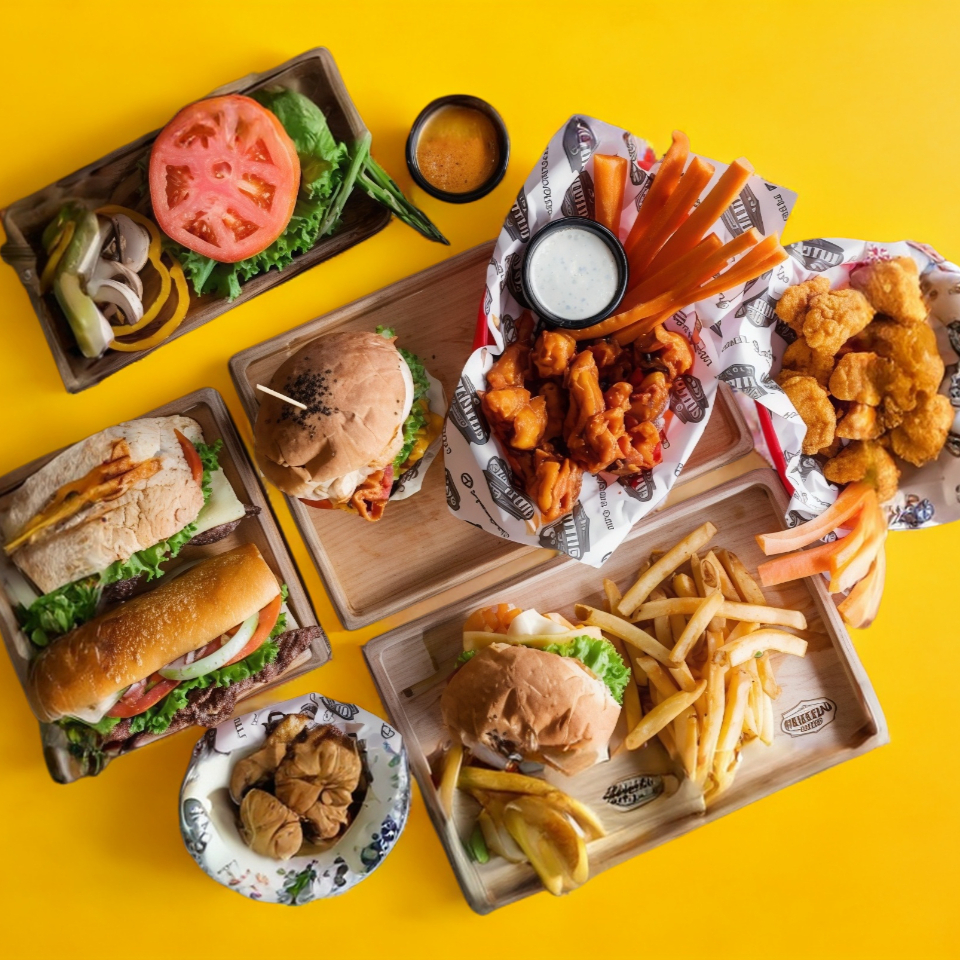 Carne, queso americano, lechuga, tomate, cebolla, pepinillo y salsa ranch.