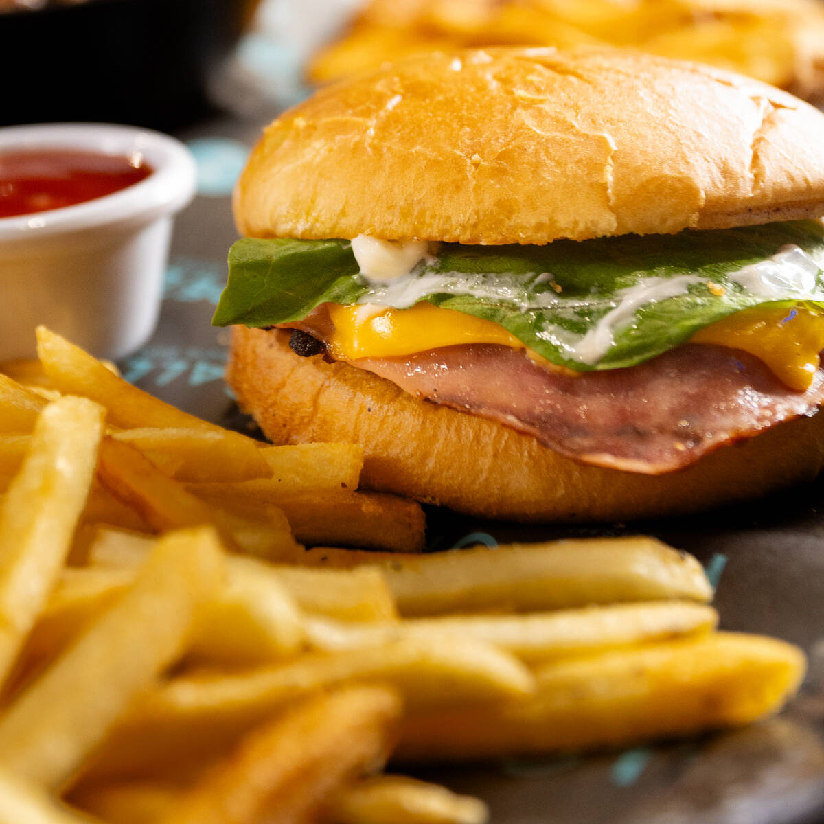 Carne, jamón, queso y papas a la francesa