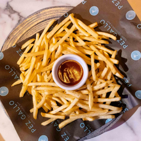 Por dentro pasta de salmón, atún, cangrejo, queso, aguacate y por fuera alga capeada bañada en salsa especial, masago y cebollín.