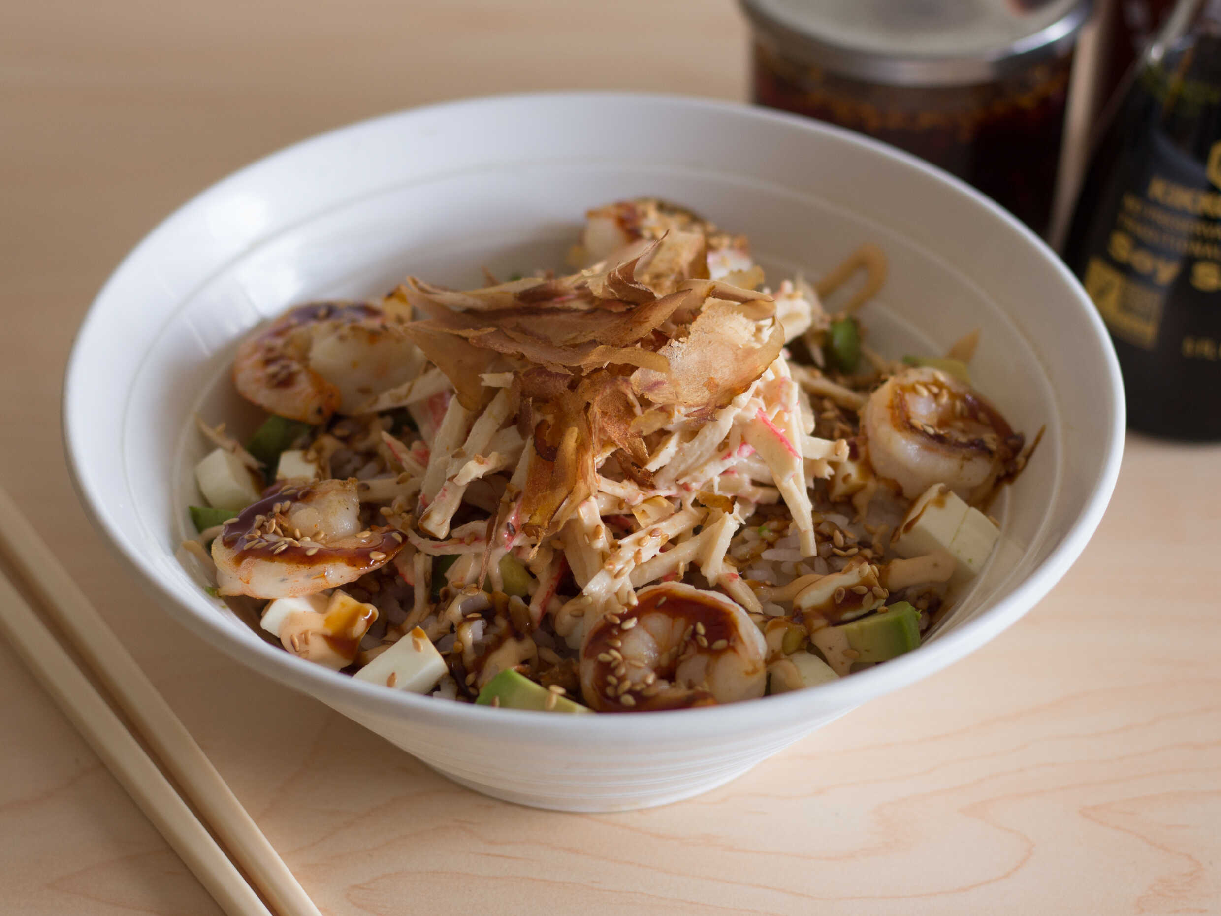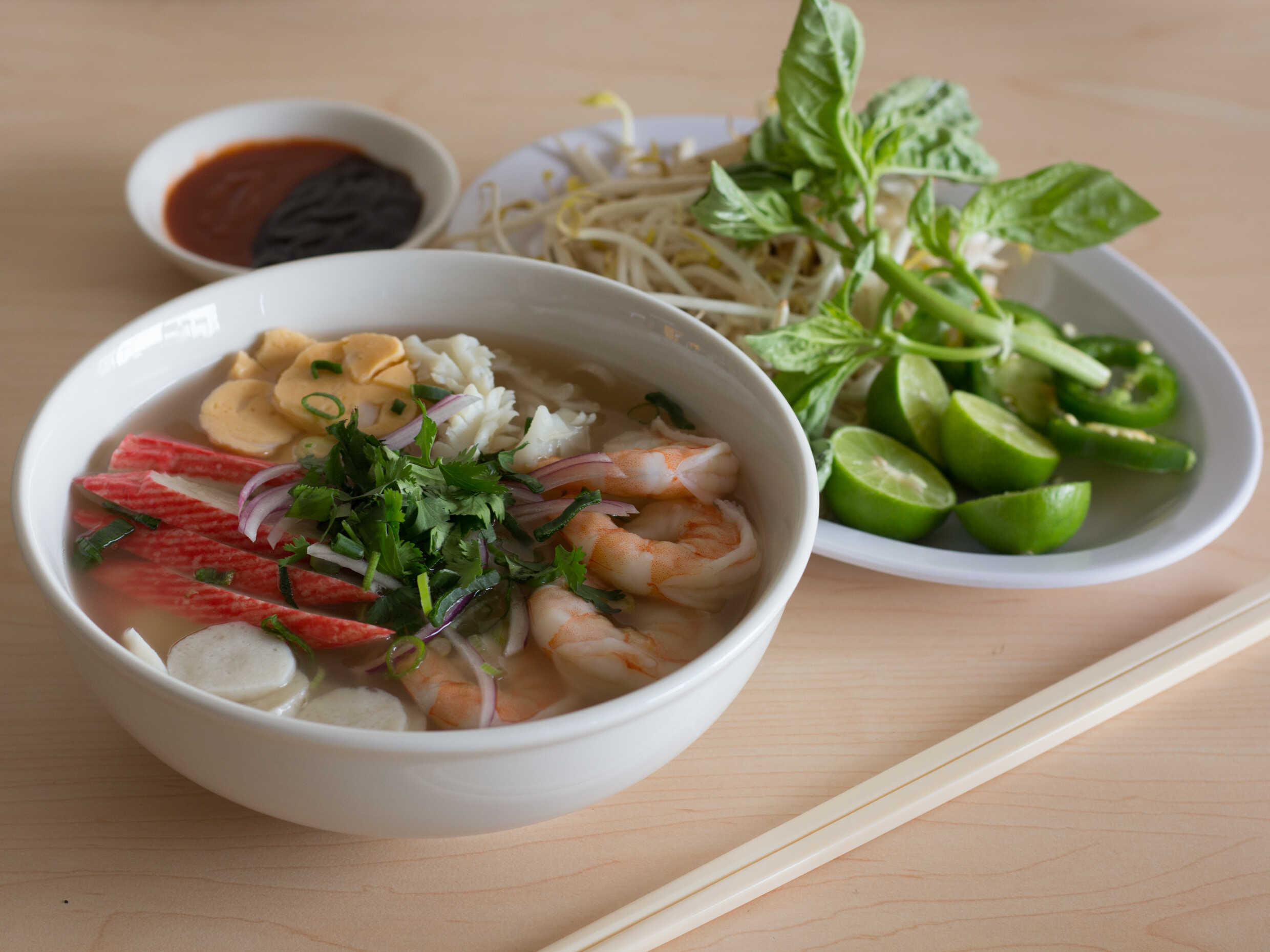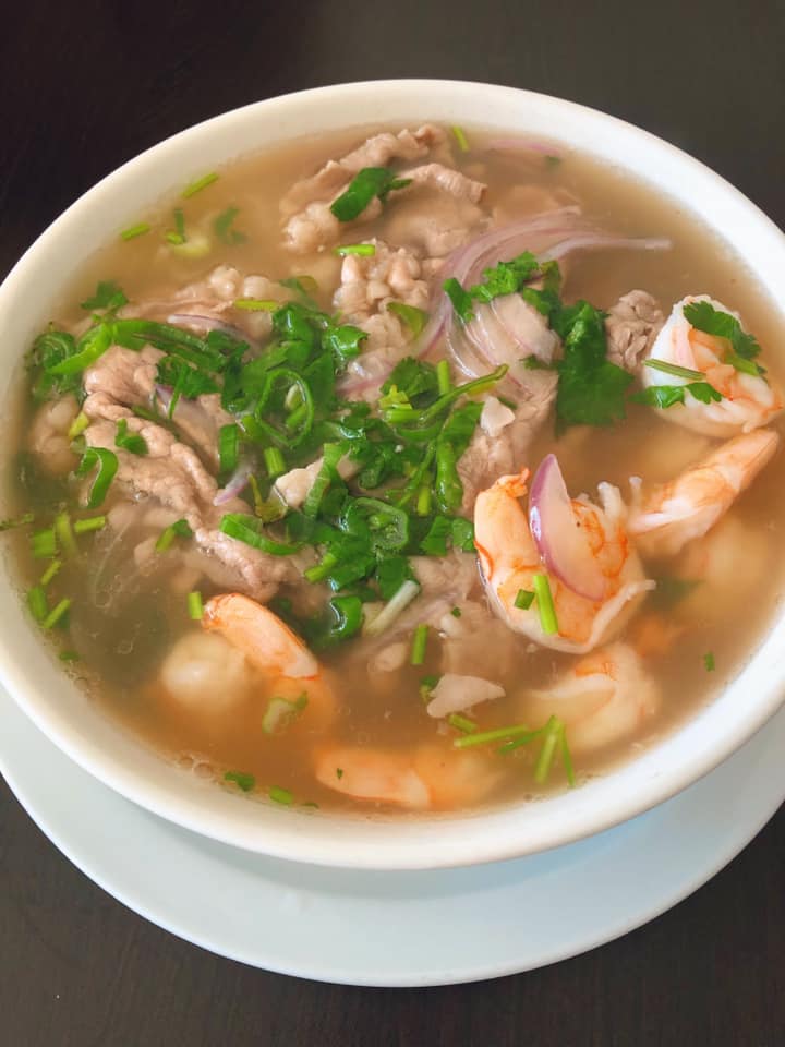 Camarón, calamar, surimi, albóndiga de pescado y de camarón.