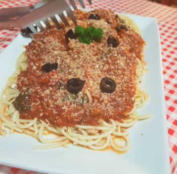 Salsa de tomate con carne molida. Incluye una orden de pan de ajo