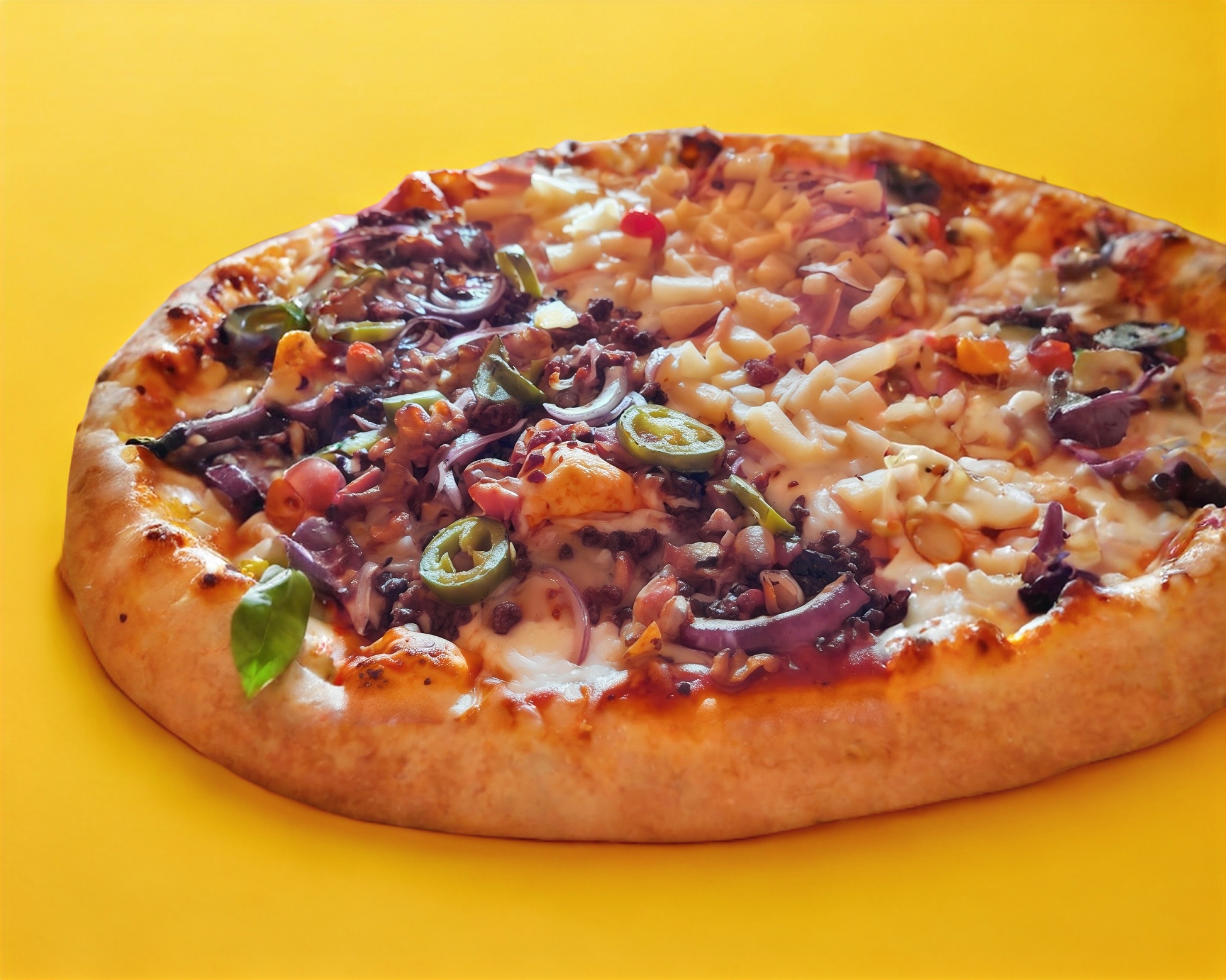 Tomate, chile morrón, champiñón, cebolla y aceituna negra.
