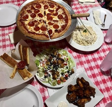 1 pizza favorita o clásica, 1 spaguetti al gusto, 1 ensalada de la casa y 1 orden de pan de ajo.