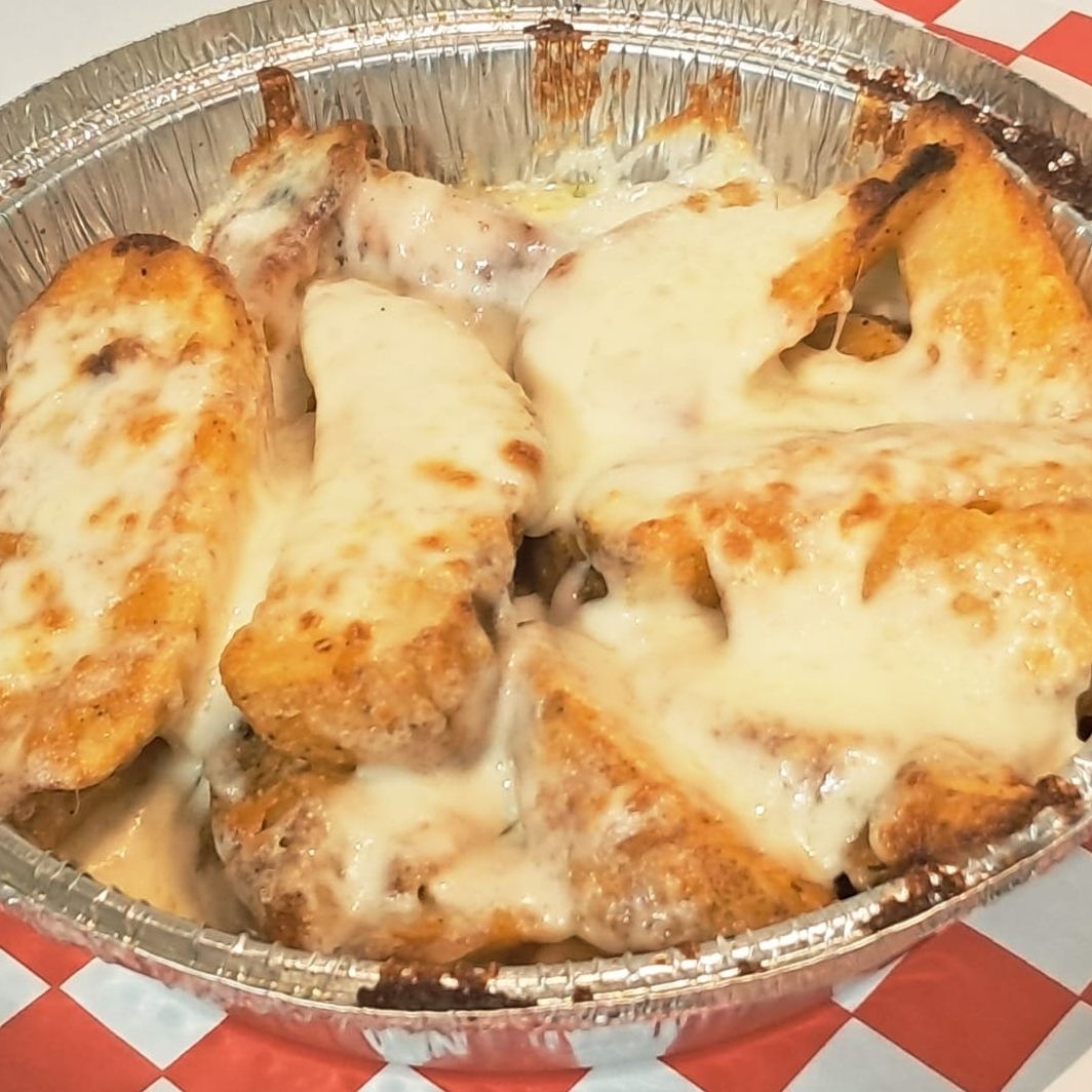 Alitas esquisitas sabor Salsa Búfalo acompañadas de aderezo Ranch,
