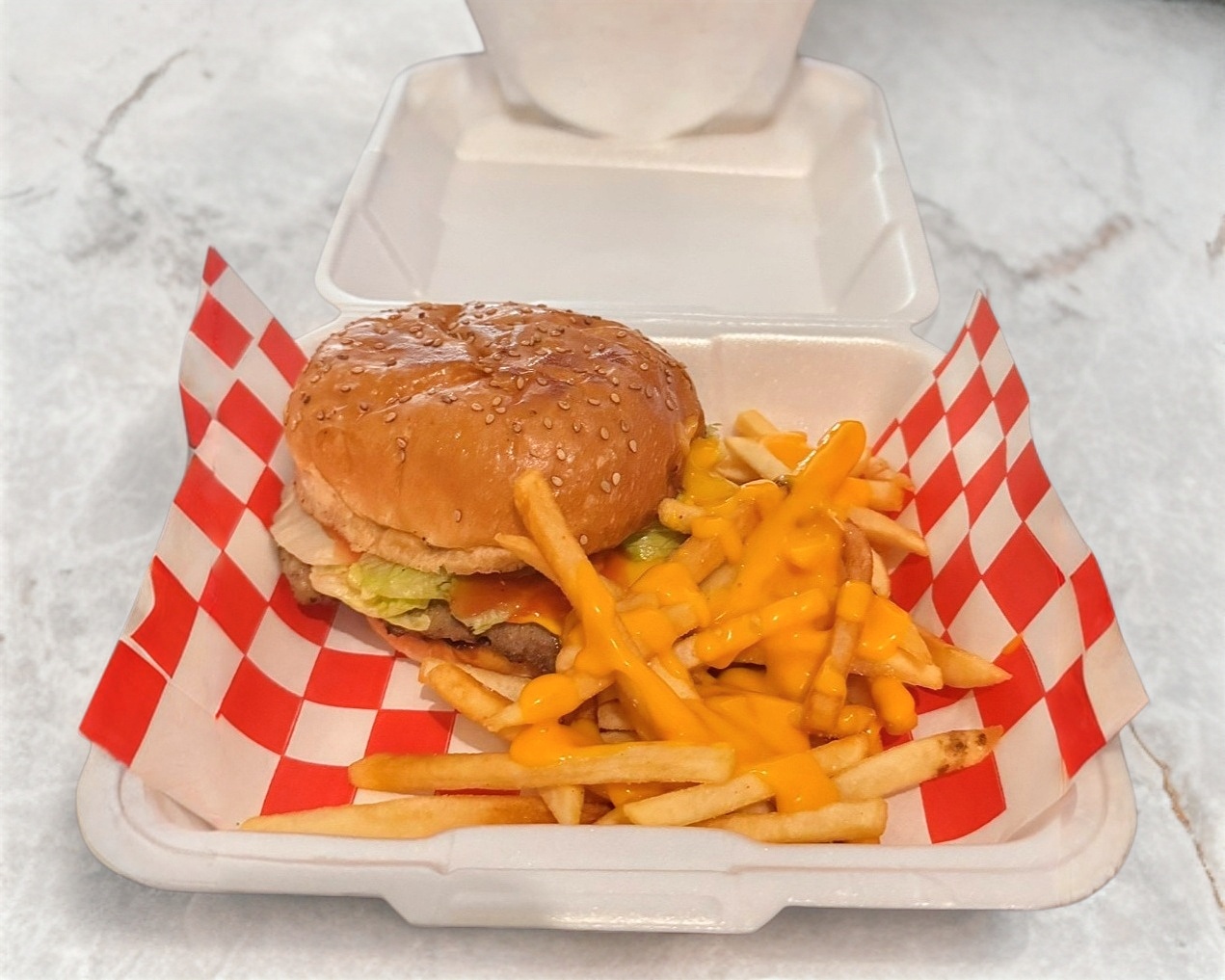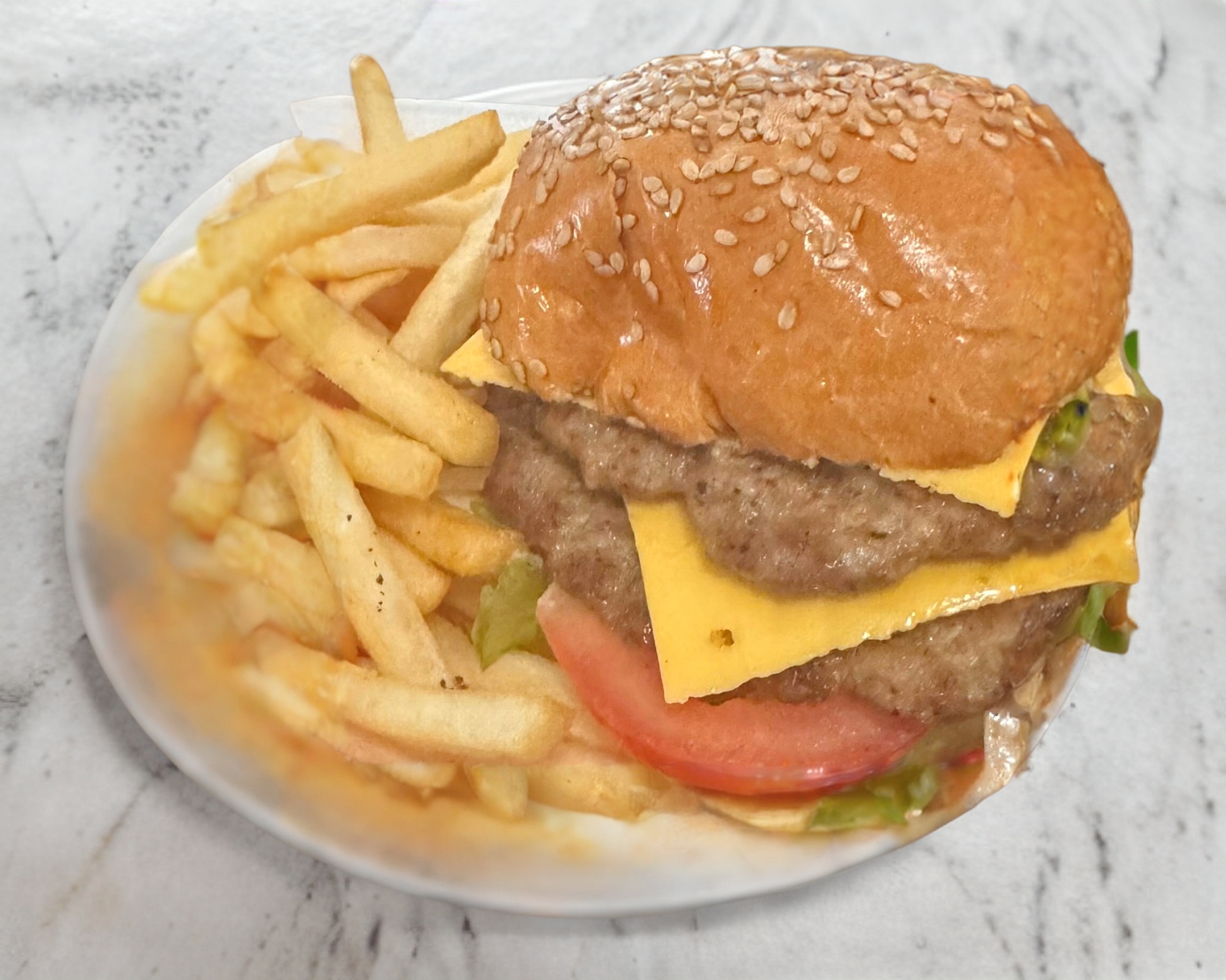HAMBURGUESA CON PAPAS CON QUESO