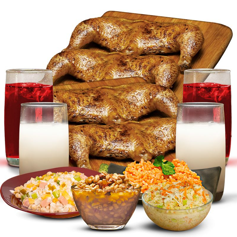 4 Pzas (.5 Pollo Pierna/Muslo)*1 + Agua 500ml*1 + 1/4lt Complemento*2