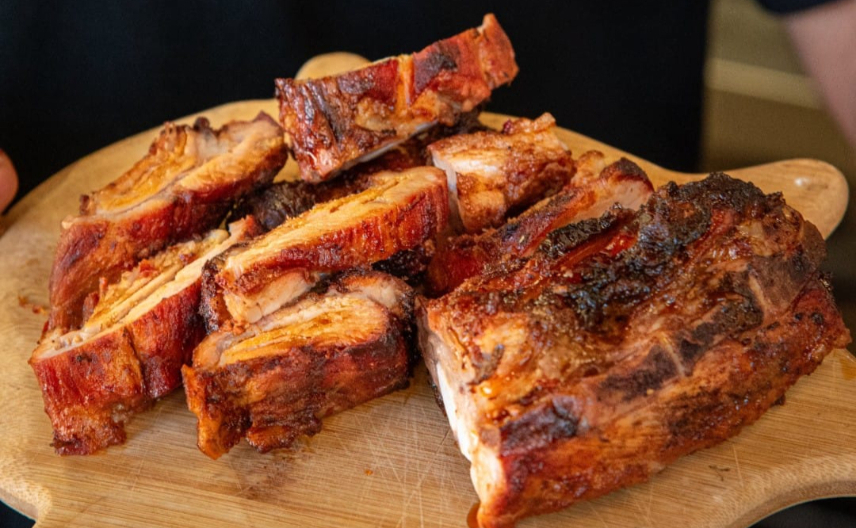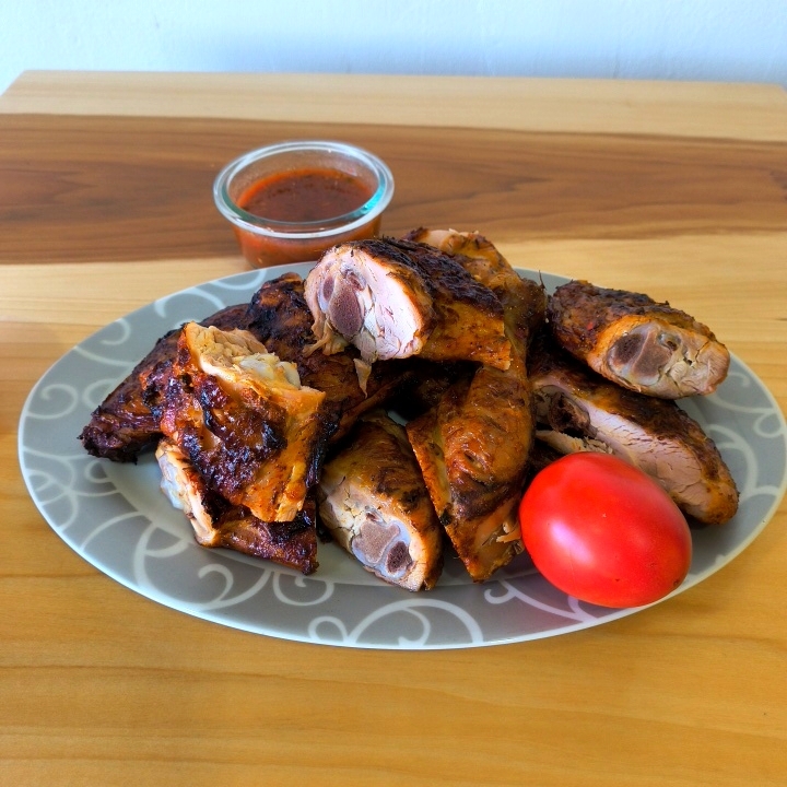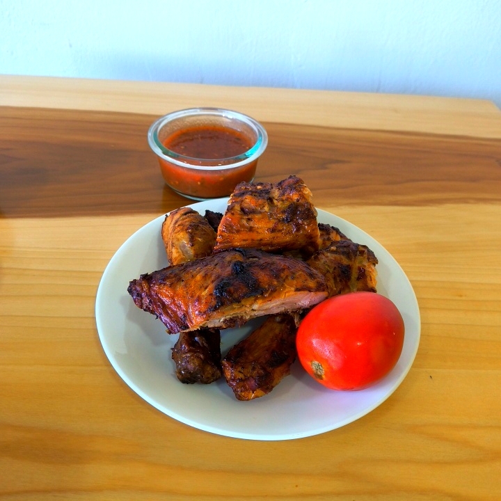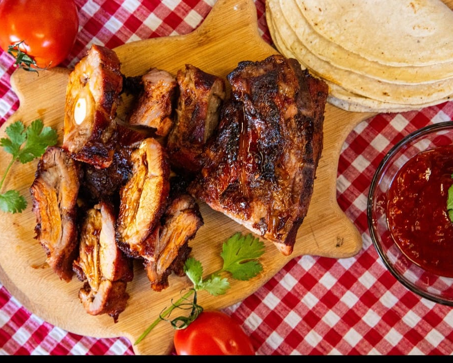 2 Ordenes de costilla de cerdo marinado especial, incluye salsa y tortillas.