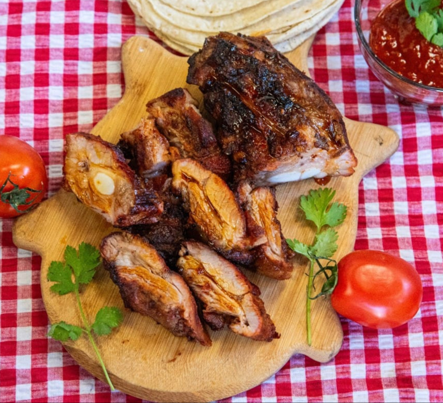 1/2 Orden de costilla de cerdo marinado especial, incluye salsa y tortillas.