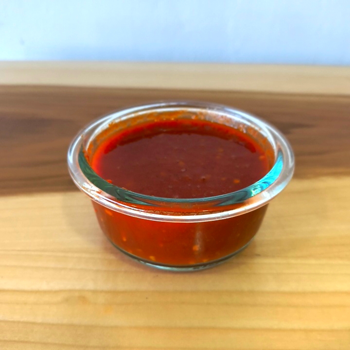 Salsa de tomate, chile jalapeño, cebolla y ajo.