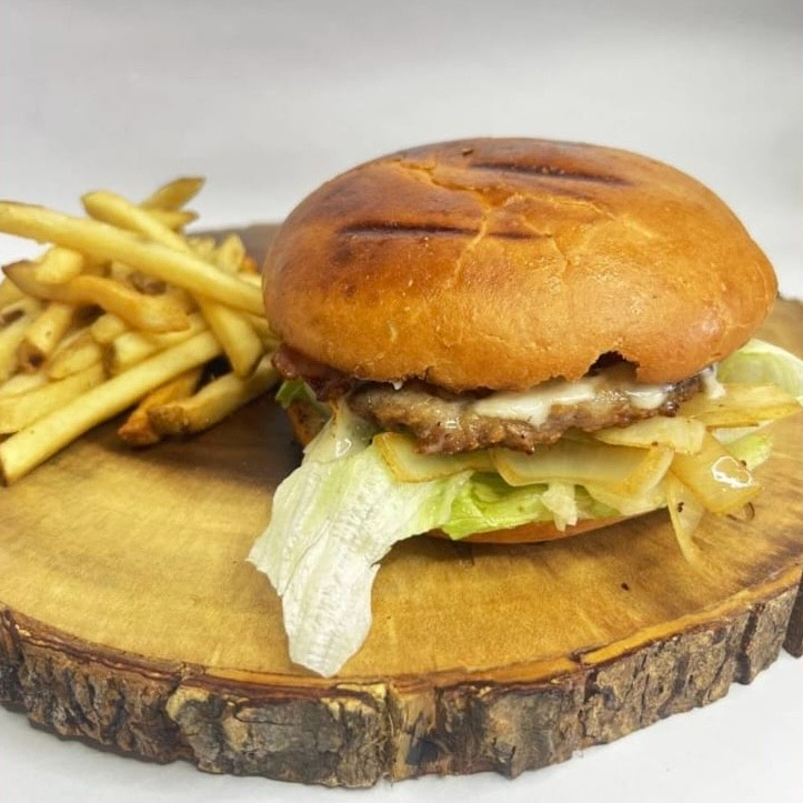 Incluye: carne de res 150 gramos, con lechuga, tomate y cebolla. Acompañada de papas fritas.