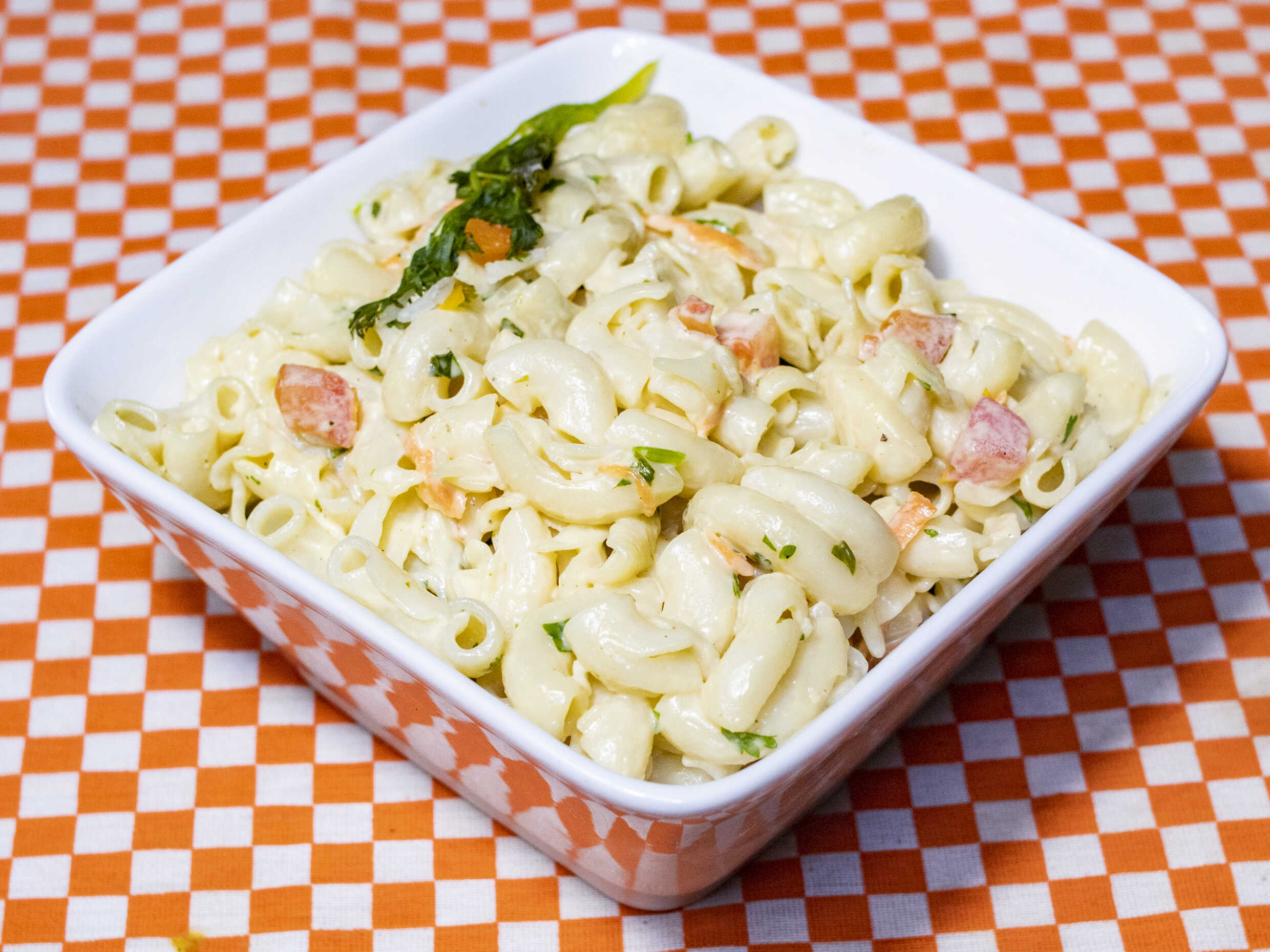 1/2 Pollo, porción de ensalada de pasta de coditos, salsa de la casa y 200 gr de tortillas.