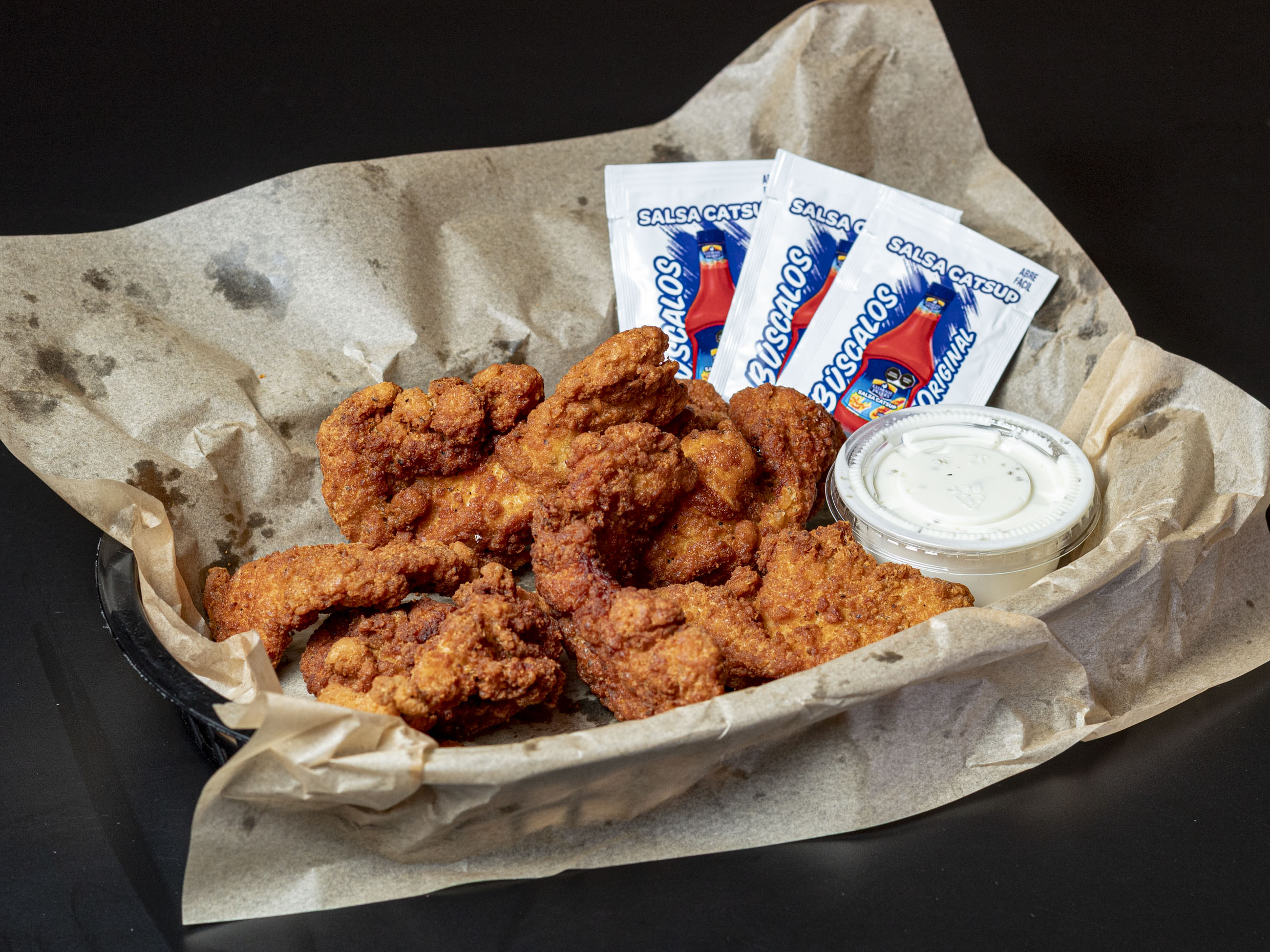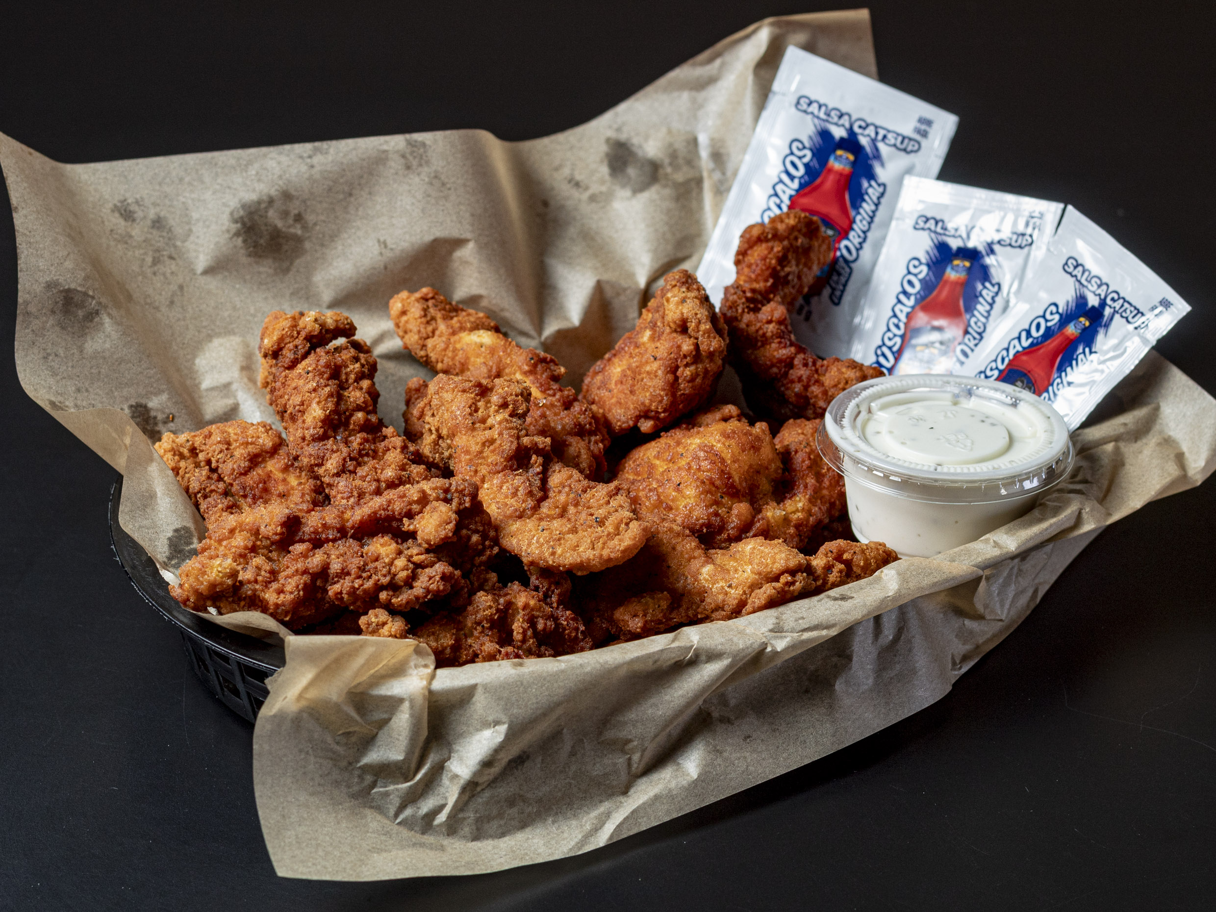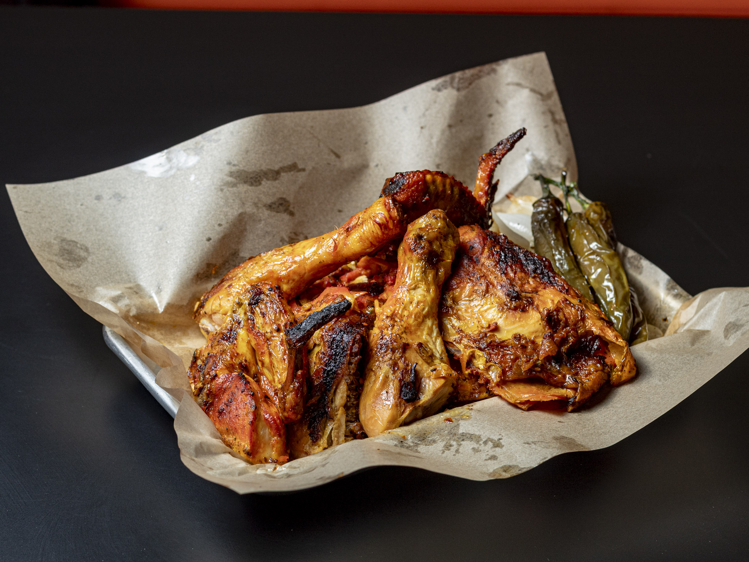 1, 1/2 Pollos, ensalada, 2 salsas.