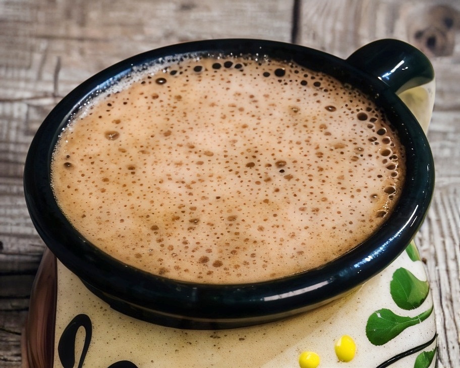 12 Oz. Espresso + cacao natural + jarabe de bombón quemado y leche cremada