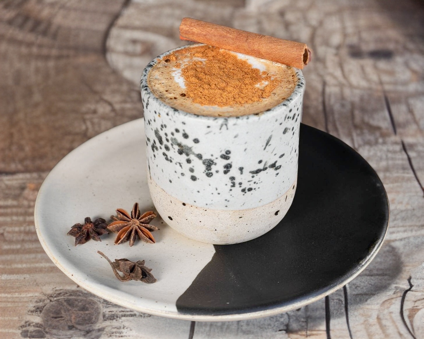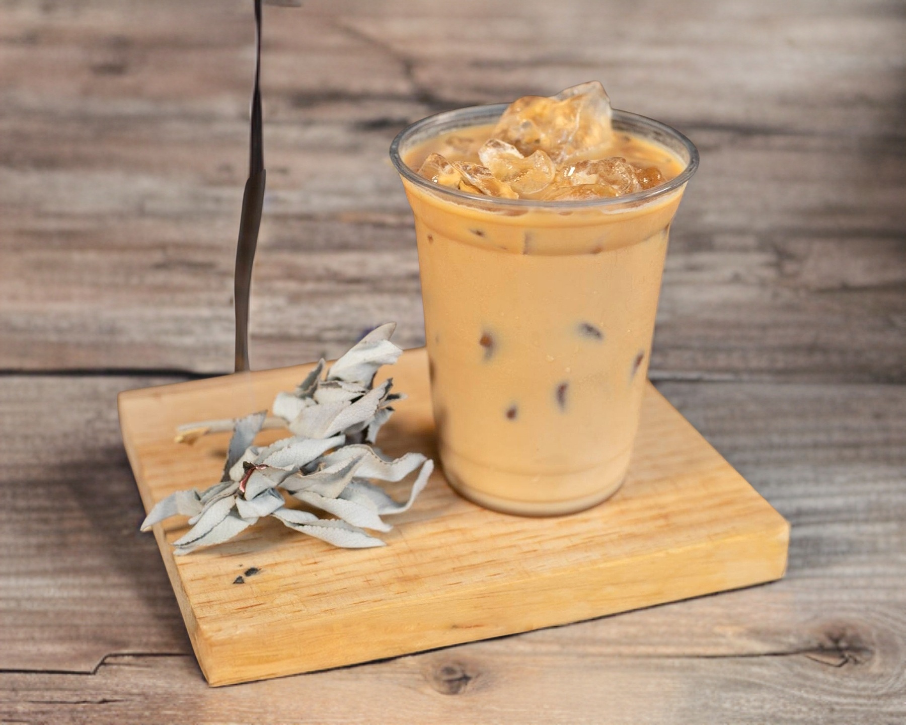 12 Oz. Espresso + azúcar mascabado + jarabe de jengibre + jarabe de canela y leche cremada