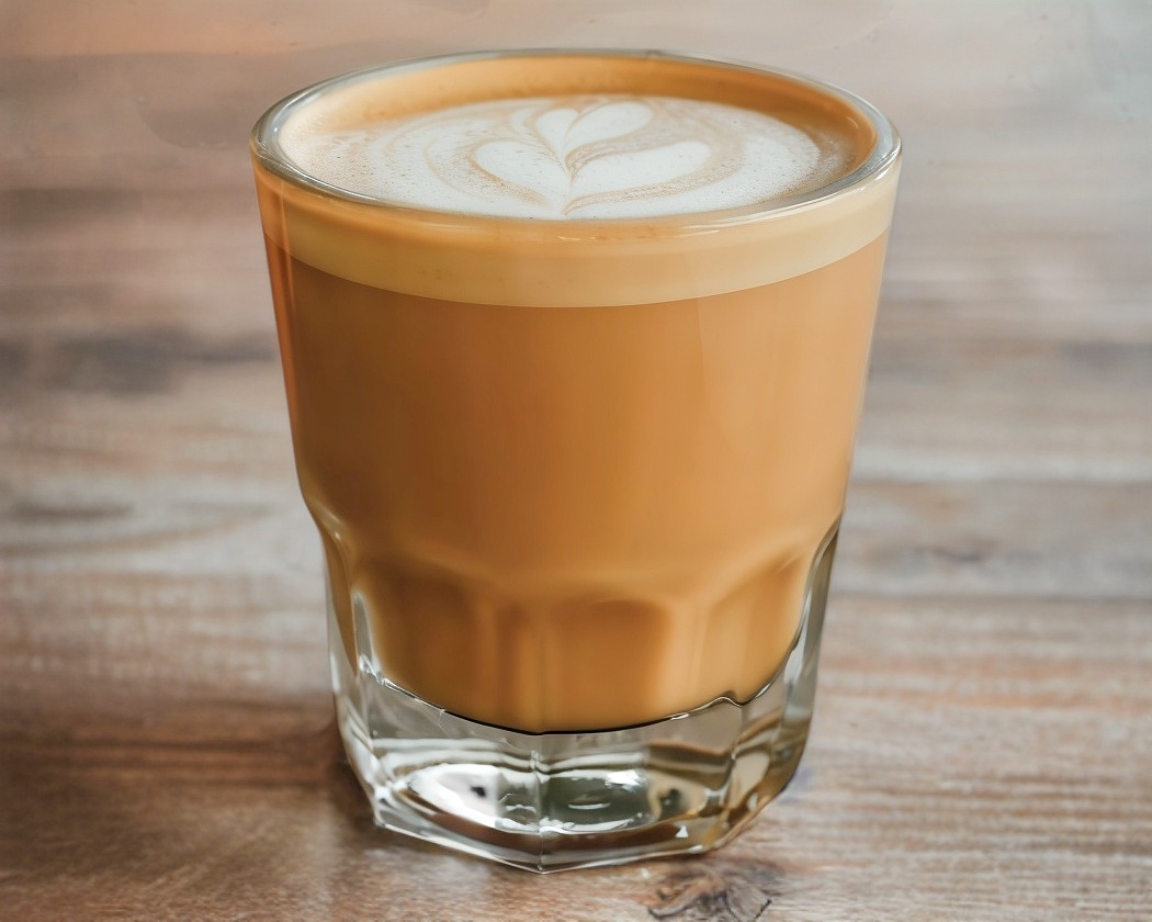 2 onzas de espresso cortado 4 onzas de leche cremada