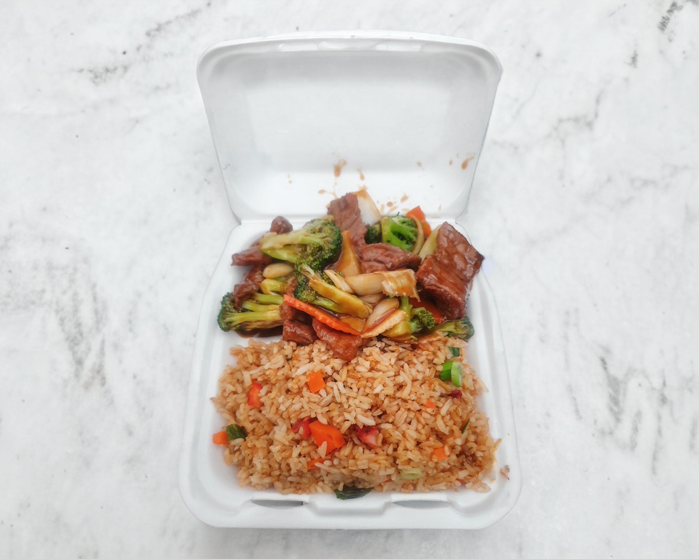 Res con verdura y salsa Mongolia.