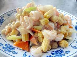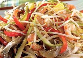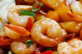 Caldo de aleta de tiburón, arroz con camarón, camarón enchilado, camarón cantonés, chop suey con camarón, chun kun.