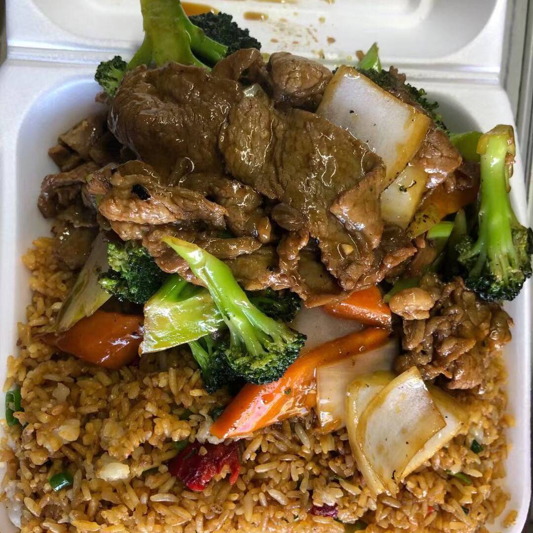 Caldo mandarín, arroz cantonés+ caldo enchilado, pollo cantonés, res con brócoli, pollo kung pao, chun kun.