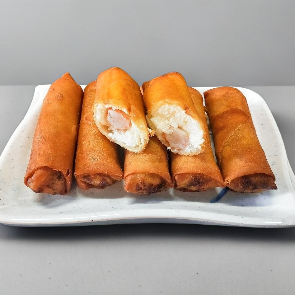 1 pieza Chun Kun de camarón con queso: rollo de camarón relleno de queso Philadelphia.