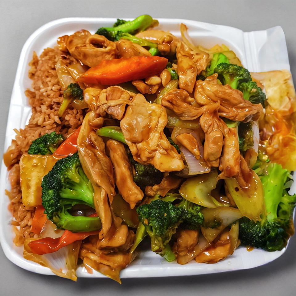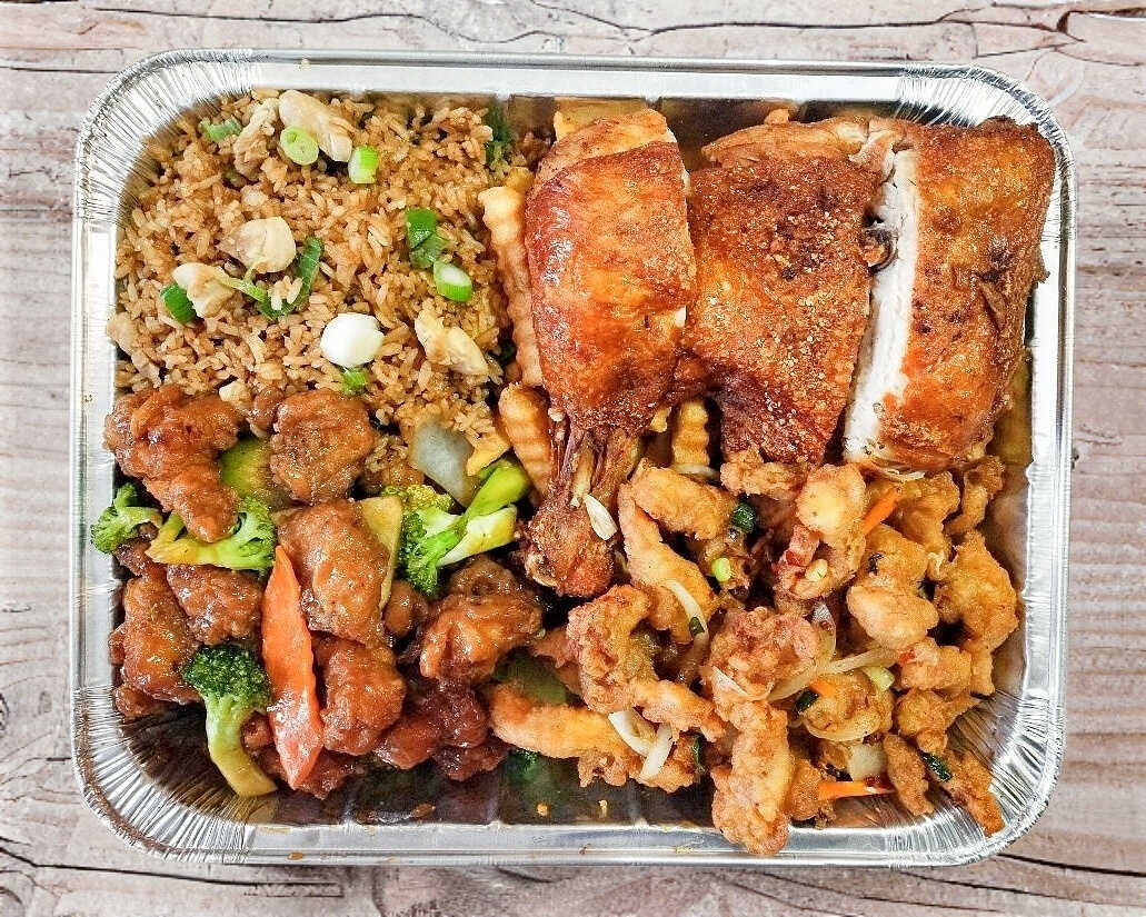 Pollo enchilado, pollo cantonés, pollo con piña, arroz frito con pollo.