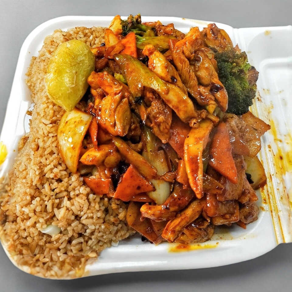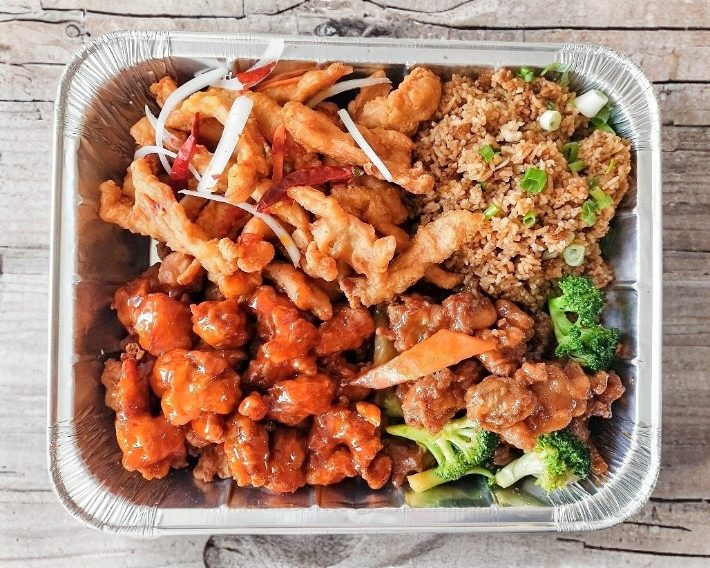 Arroz frito con 3 guisados a escoger.