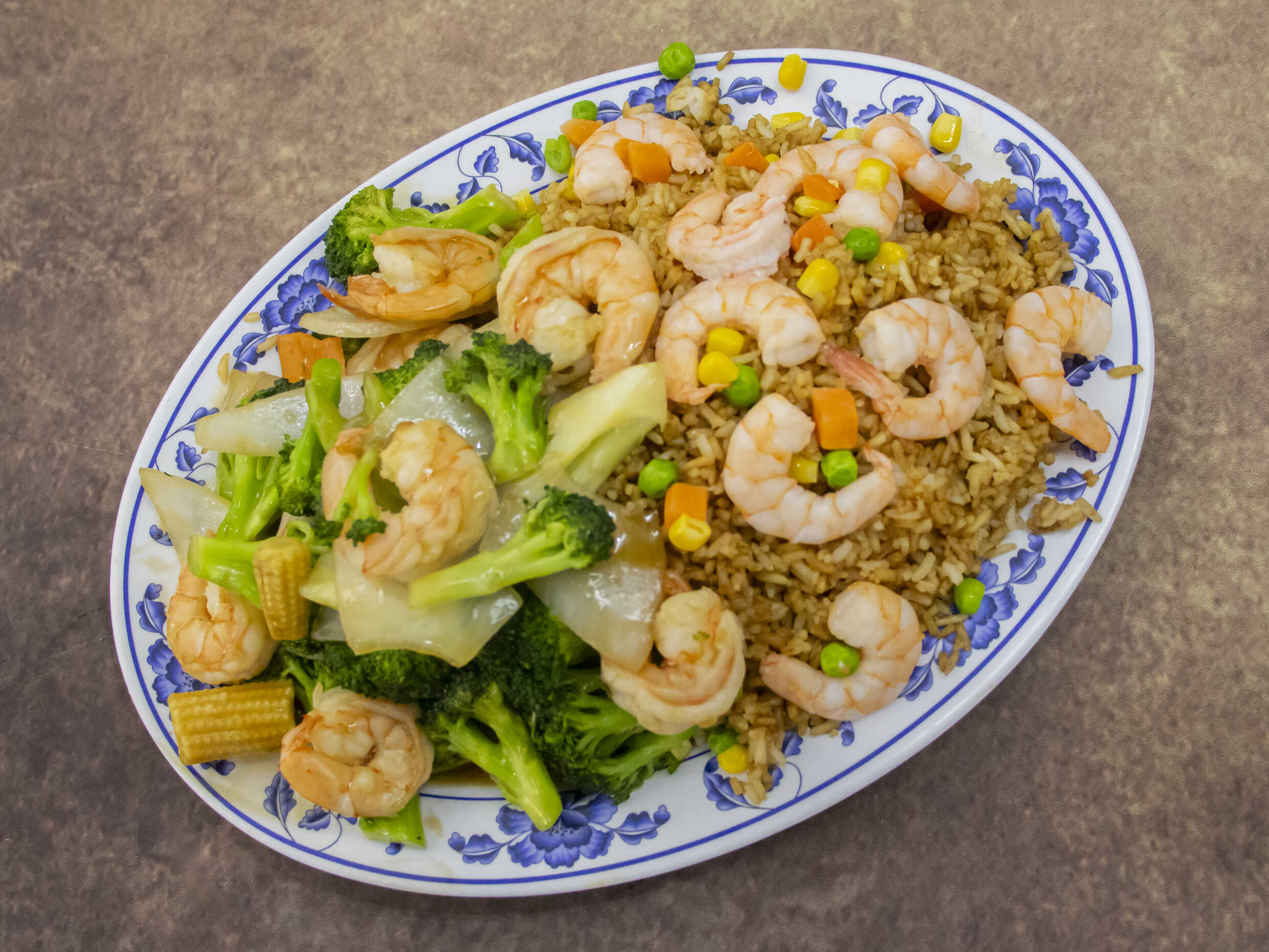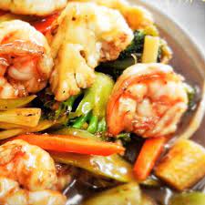 Media orden de camarones en salsa de ostión. No lleva arroz.