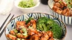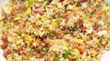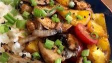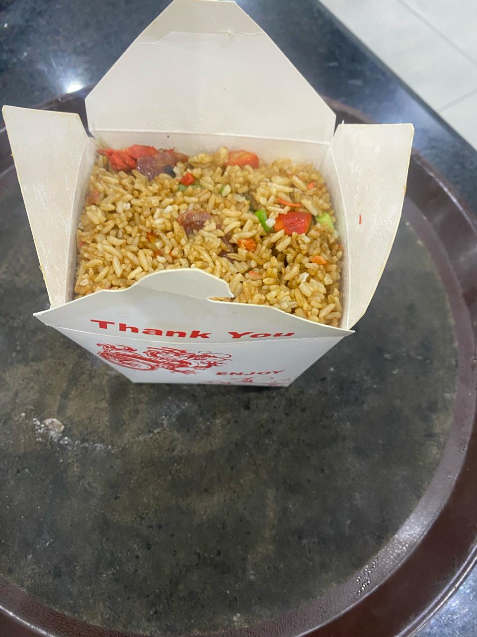 Pollo teriyaki pechuga, arroz con puerco, chile frito y chun kun.
