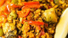 Pepper speak pollo, arroz con puerco, chile frito y chun kun.