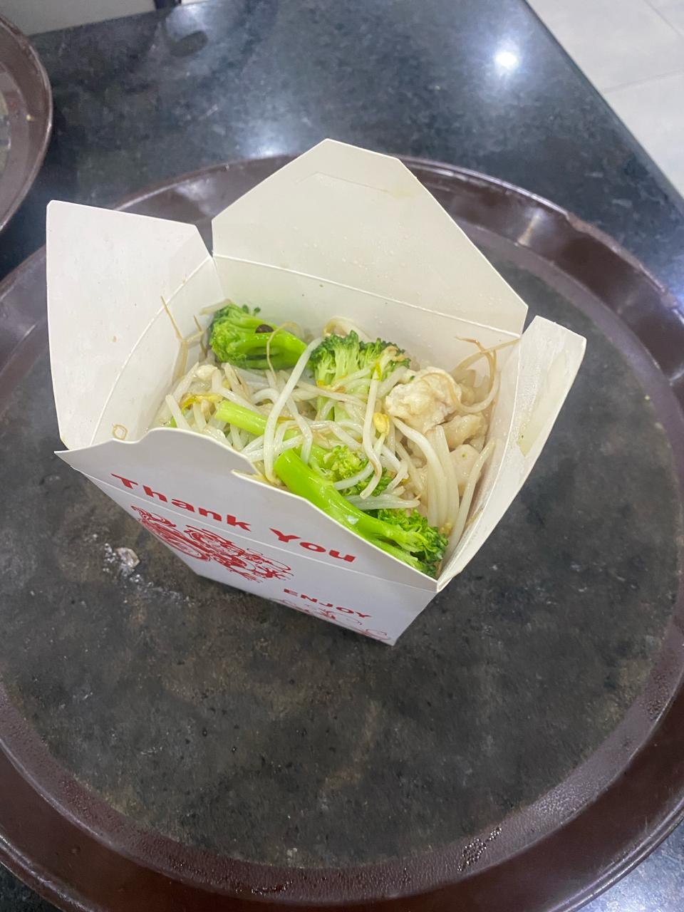 Media orden de pollo, lechuga, zanahoria y brócoli. No lleva arroz.