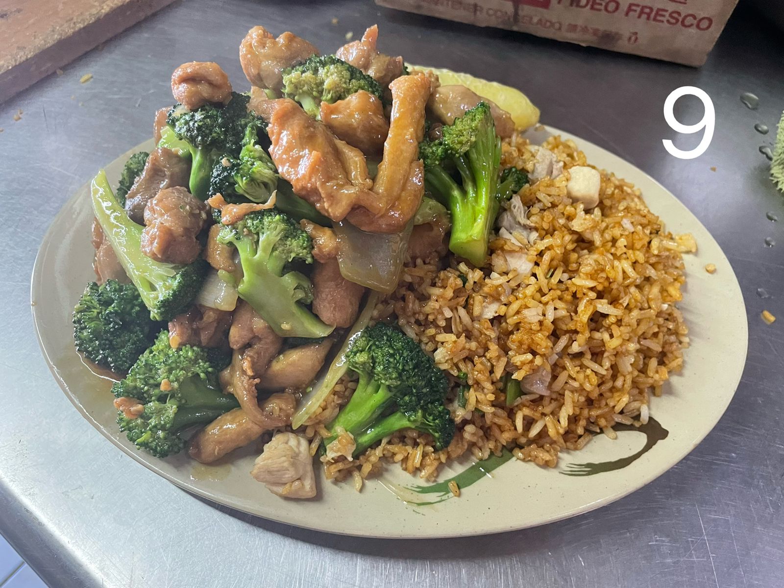 Pollo cantonés, pollo enchilado y arroz con pollo.