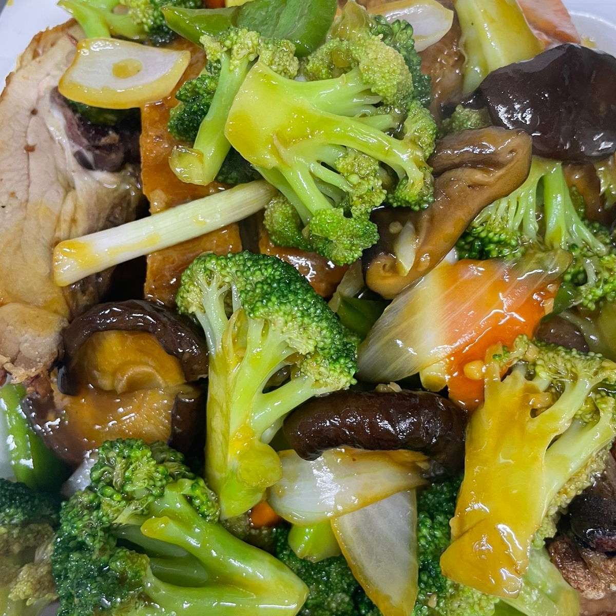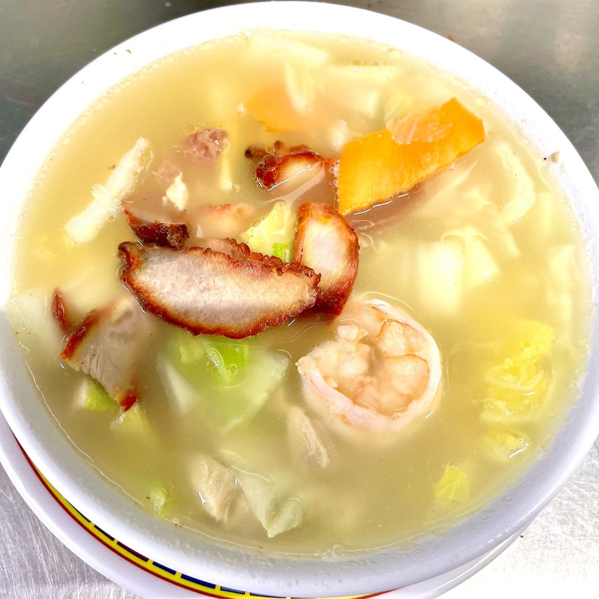 Caldo cantones, carnita de puerco asada, camarón almendrado, res con brócoli, pollo con piña, pollo asado, arroz cantonés.