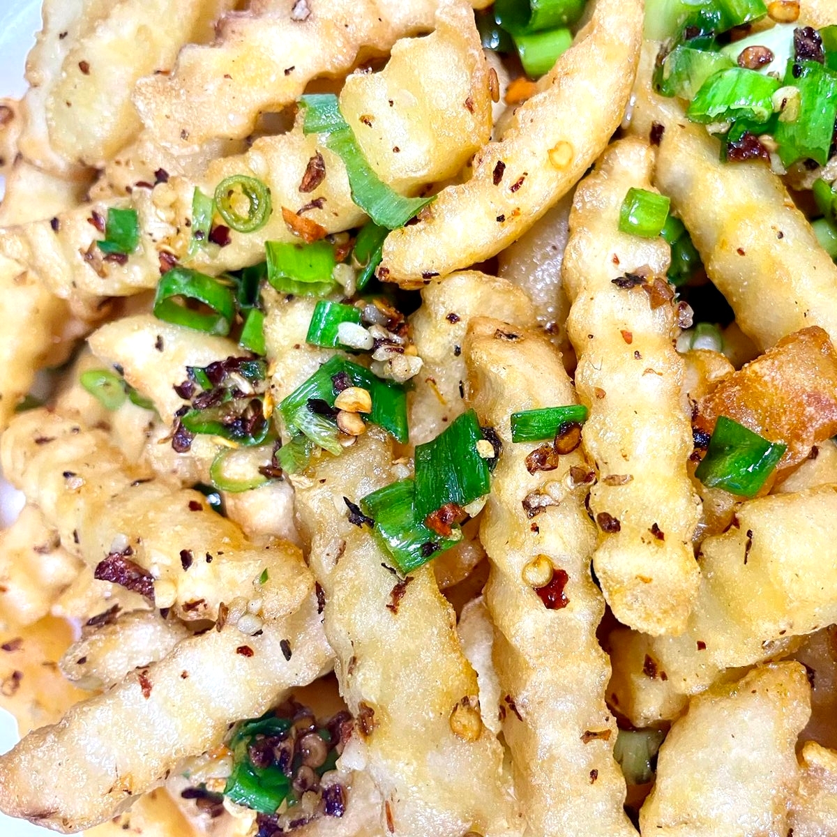 8 Piezas de wontón frito, rellenas de queso y con un acompañamiento de gravy dulce.