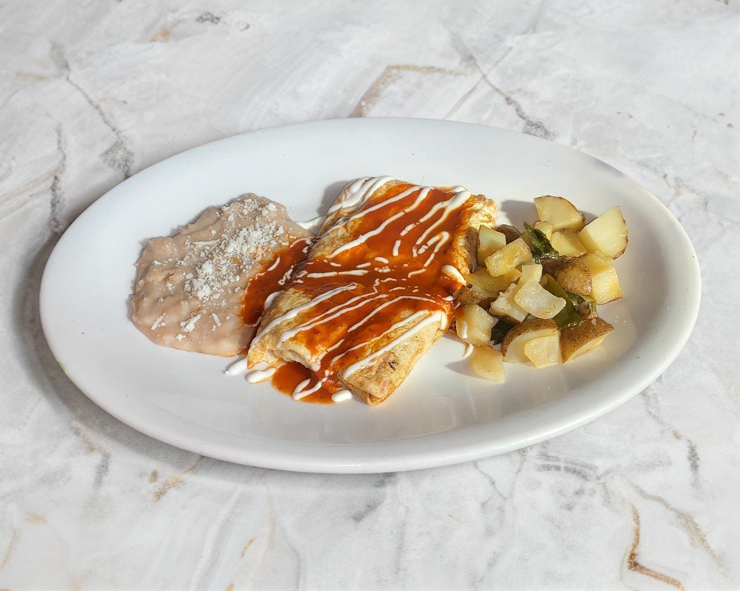 Acompañado de papas campesinas y frijole