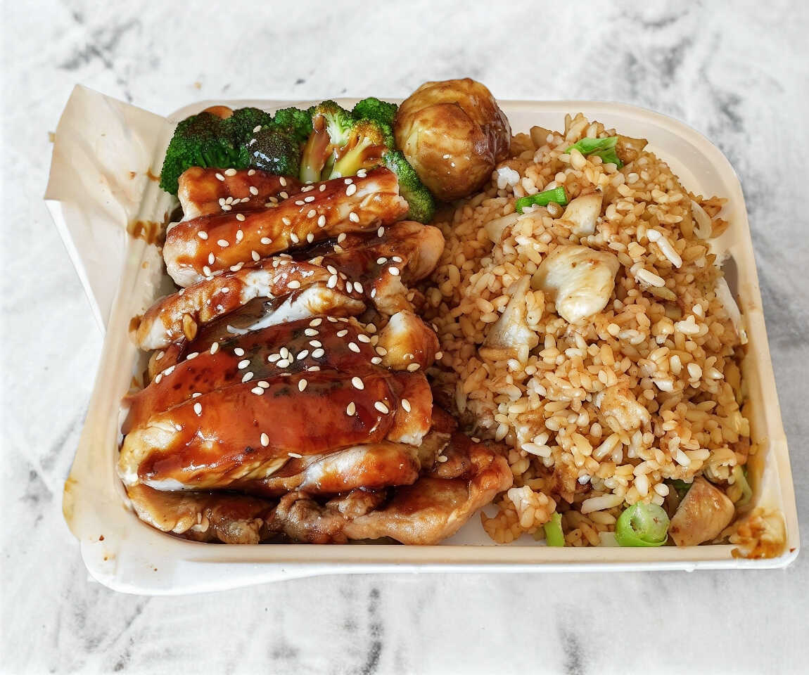 Pollo Teriyaki Arroz con Pollo y Uno Chun Kun