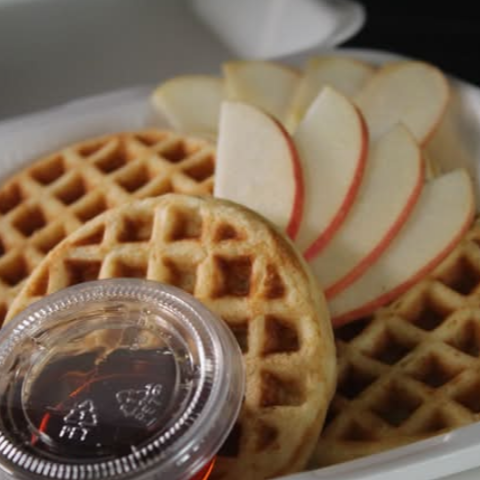 4 waffles de masa de elote con manzana.