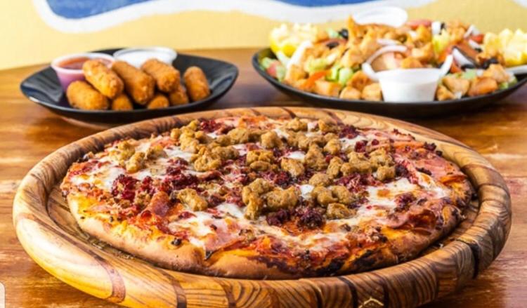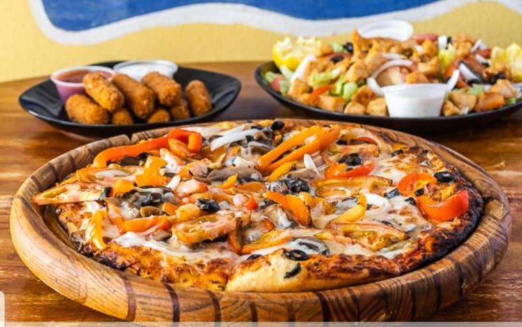1 Pizza de pepperoni big rhinos (20 pulgadas), alitas, spaguetti y soda de de 2 litros.