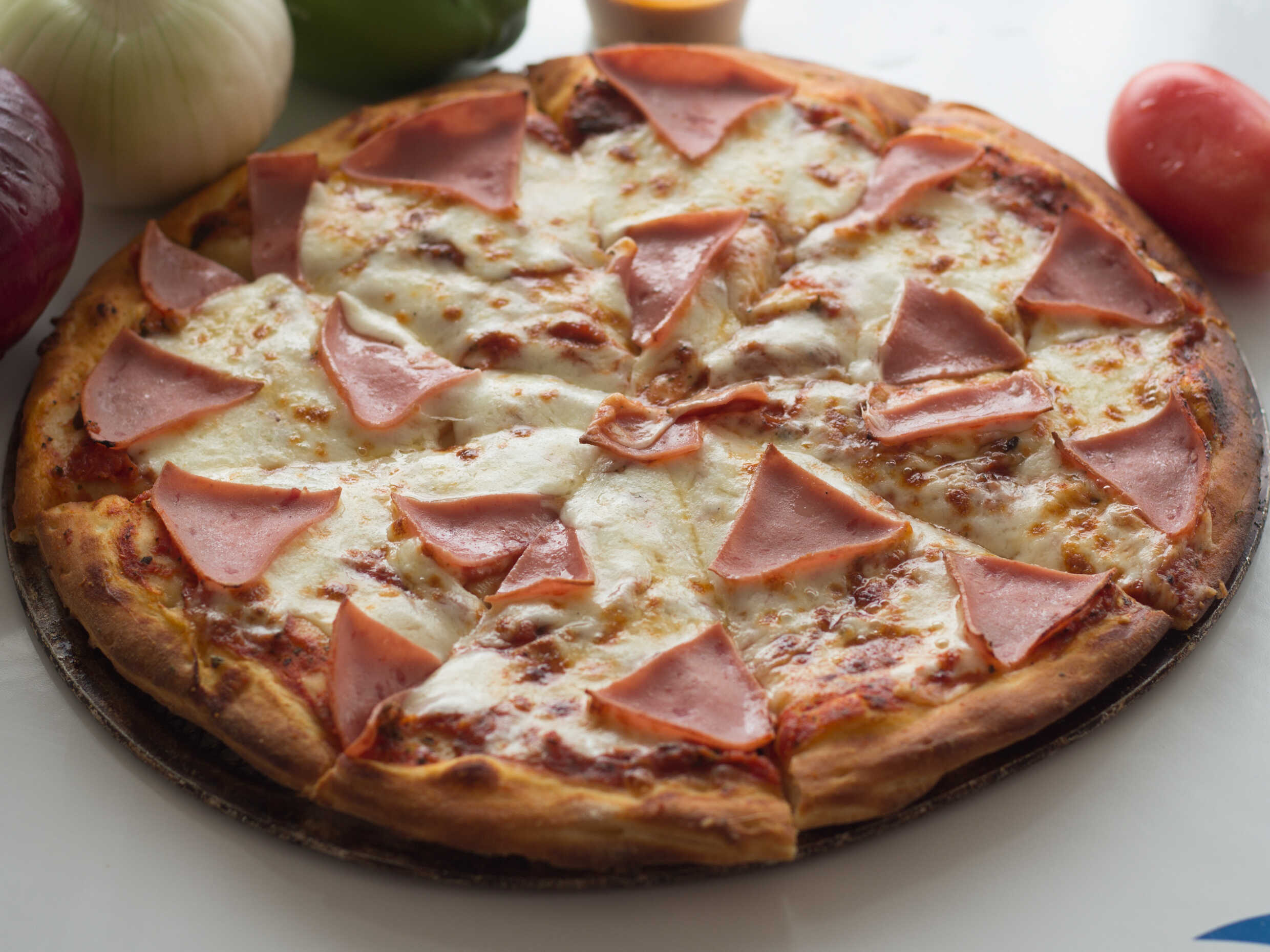 Jamón, chorizo, cebolla y jalapeño.
