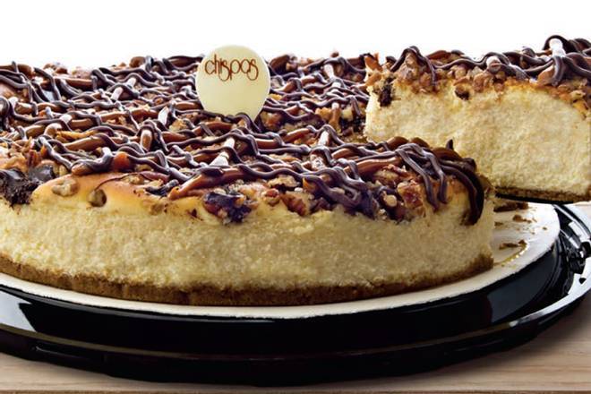 Pastel de queso con chispas de chocolate.