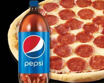 Pizza mediana de pepperoni, spaguetti regular, soda de 2 litros.