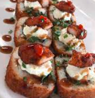 Relleno de queso crema, aguacate, pepino, camarón forrado con platano macho frito.