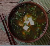 Clásica sopa miso acompañada con vegetales (Calabaza, cebollín, zanahoria, champiñon, acelga, chop suey)
