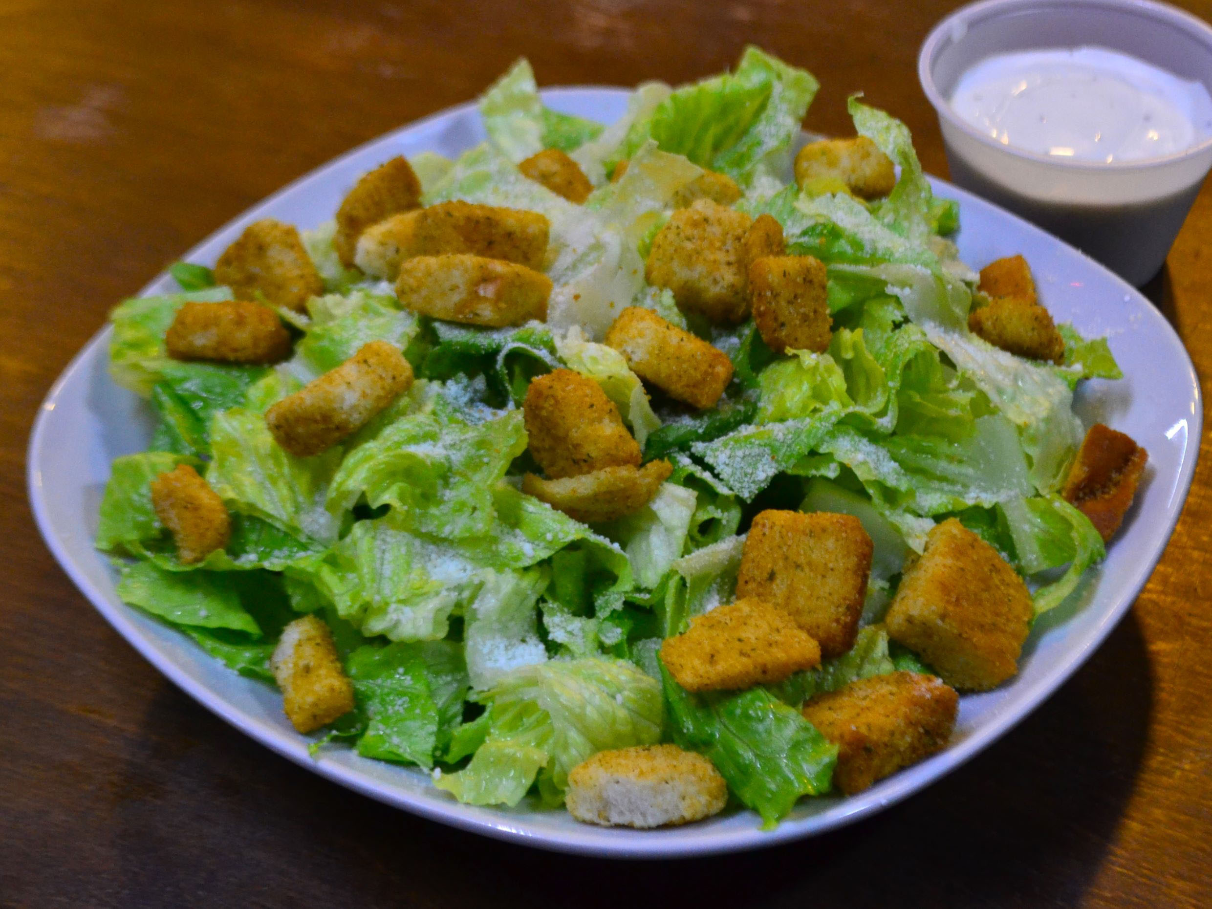 Lechuga romana, queso parmesano, crutones y aderezo césar.