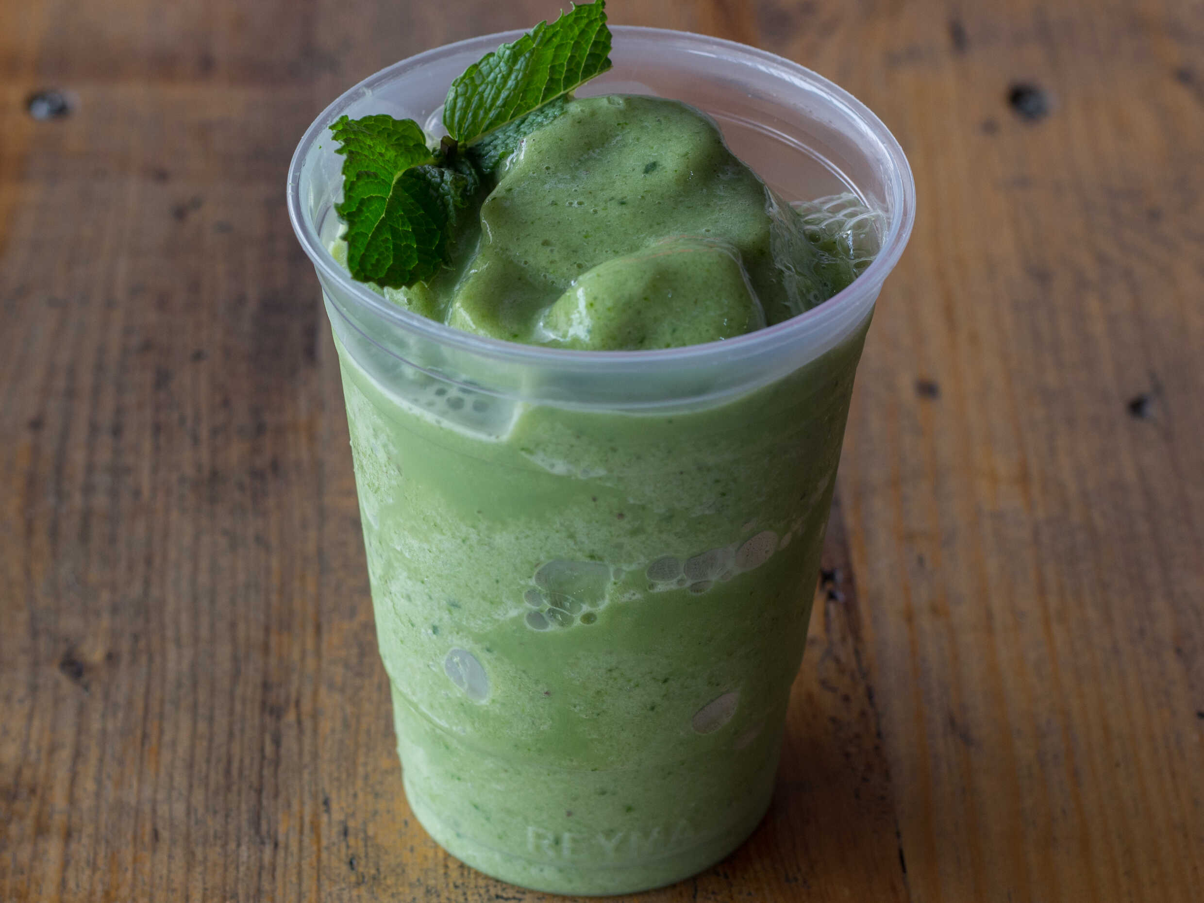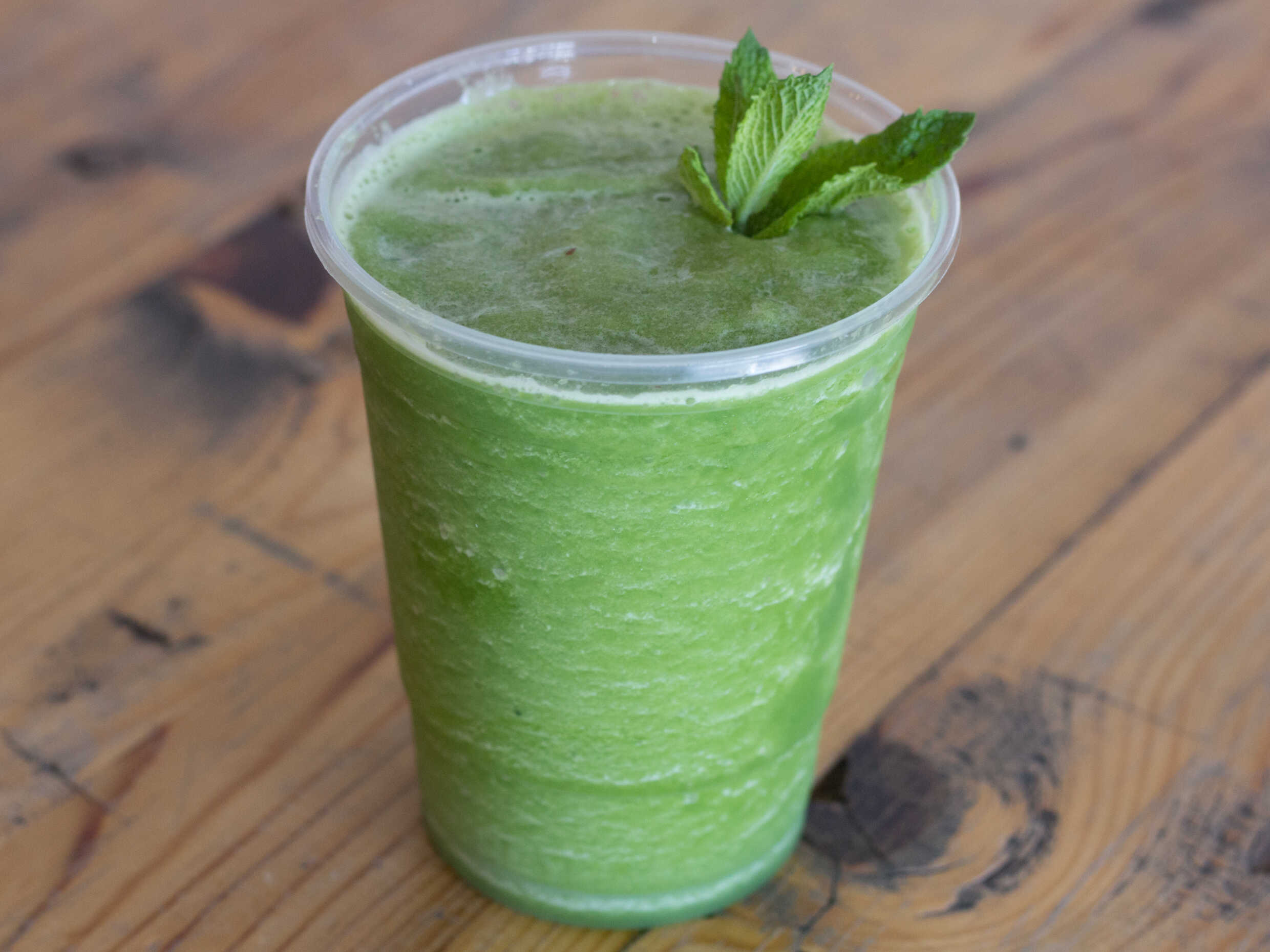 Plátano, espinaca, menta, vainilla y leche.