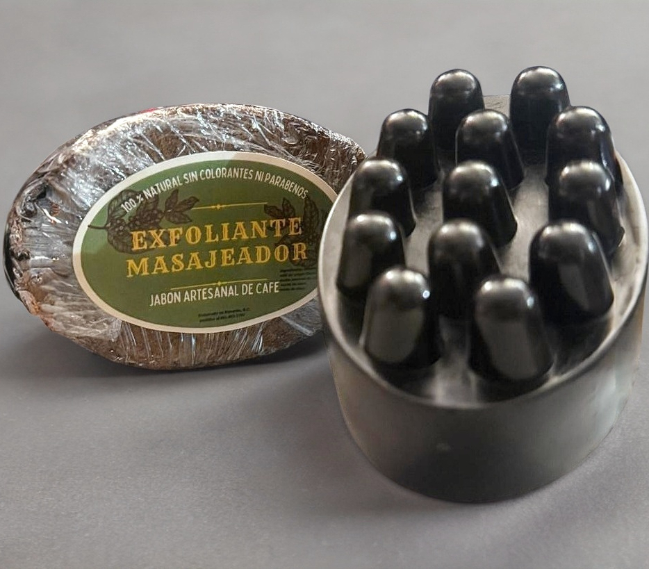 Elaborado artesanalmente, con ingredientes naturales como aceite de coco, aceite de olivo, esencia de miel, y molienda de cafe de origen oaxaqueño