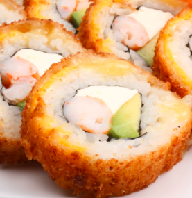 Camarón empanizado y aguacate por dentro Philadelphia por fuera.