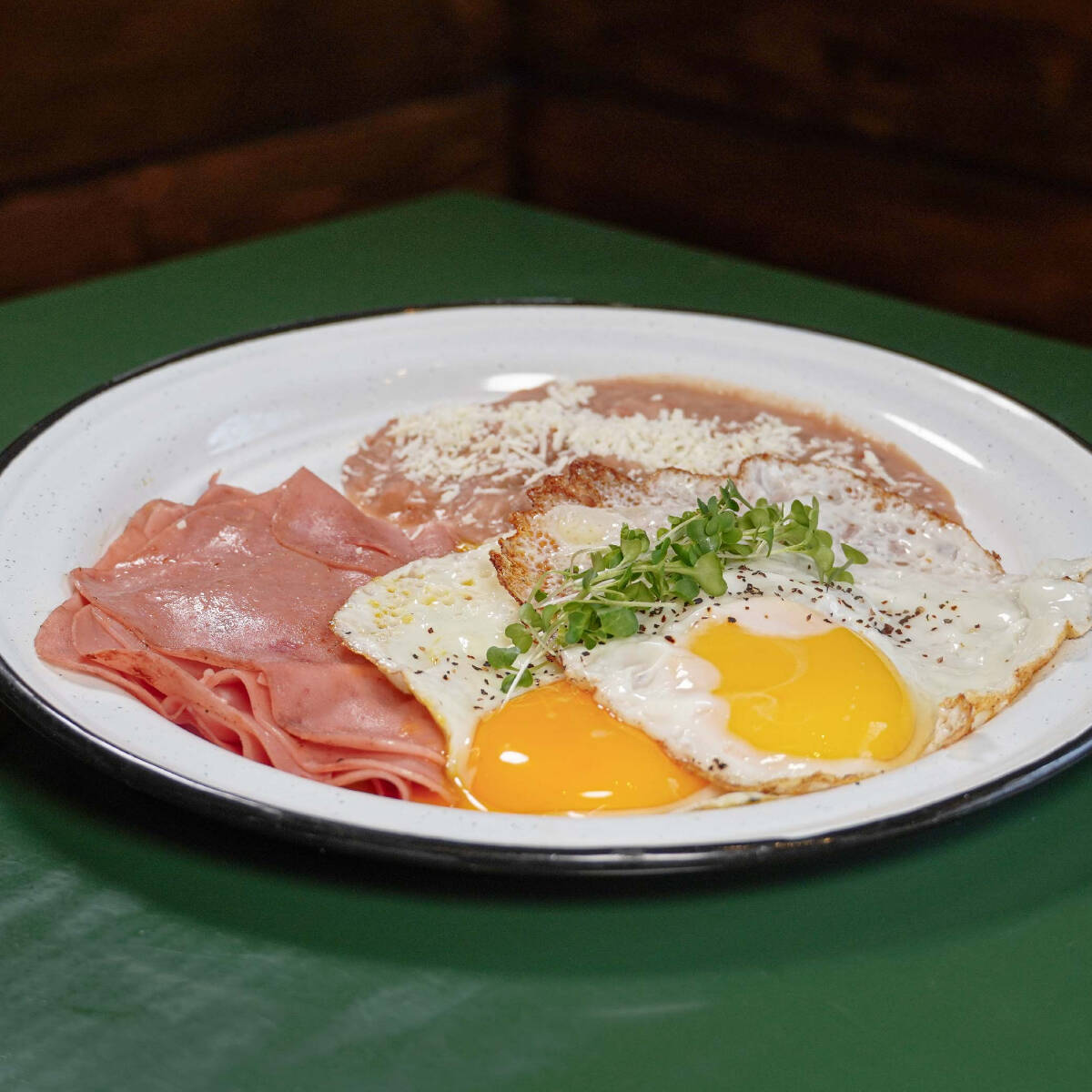 Tus huevos: revueltos, estrellados tiernos o bien cocidos. Elige los tuyos: salchicha, jamón, tocino, chorizo, a la mexicana, divorciados o rancheros. Acompañados de frijoles refritos.
